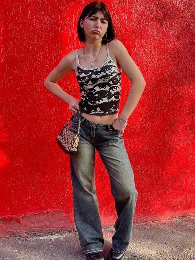 Gothic Portrait Print Aesthetic Y2K Harajuku Short Sleeve White Crop Top