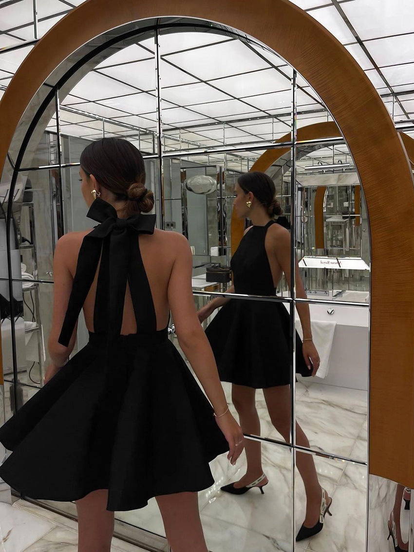 Enter your #bowgate era in our Bow-Gate dress. Features a dainty tie-up halter that you can style as a bow.
