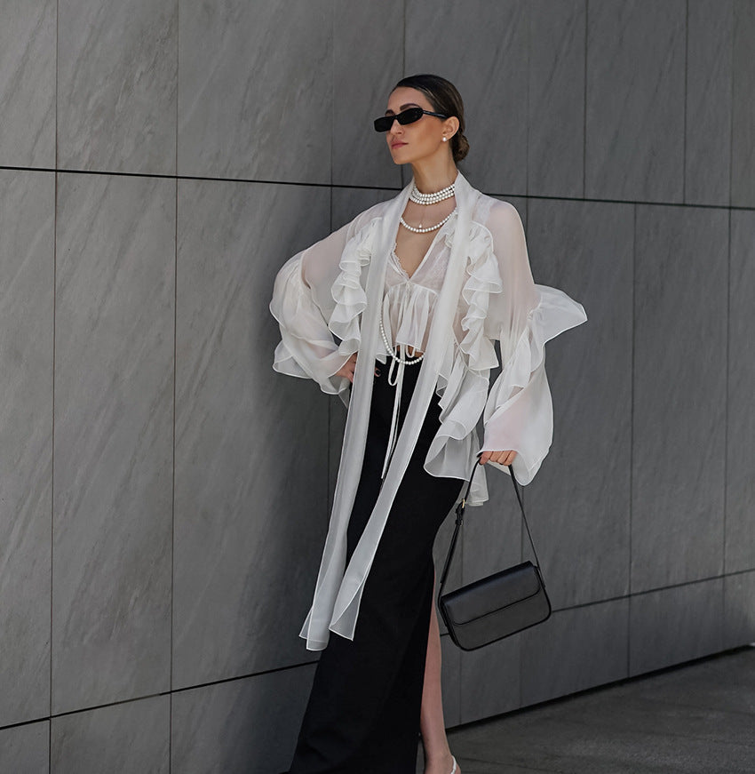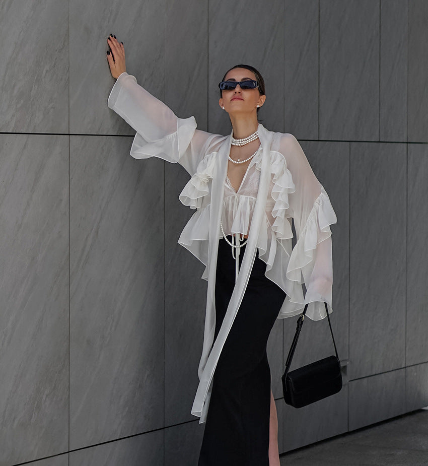 A breezy blouse with a playful ruffle detail, versatile for date, fun and brunch. Our Thorpe Top is a must have.
