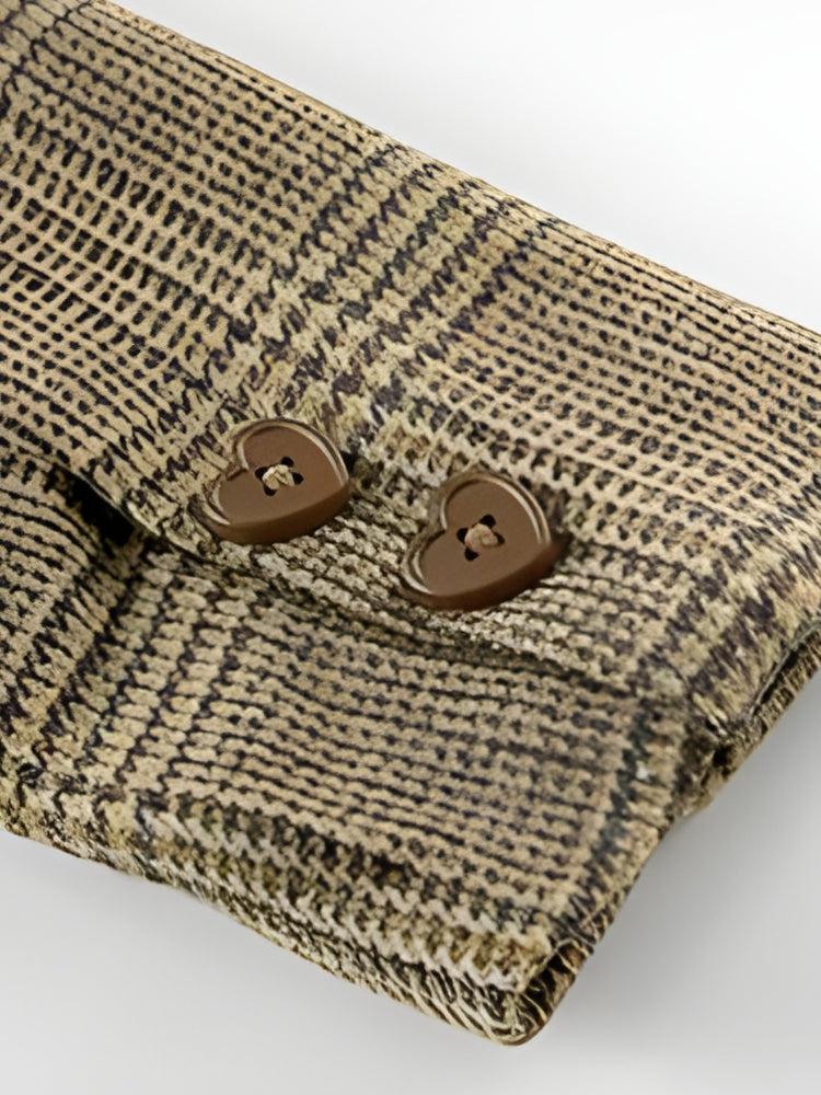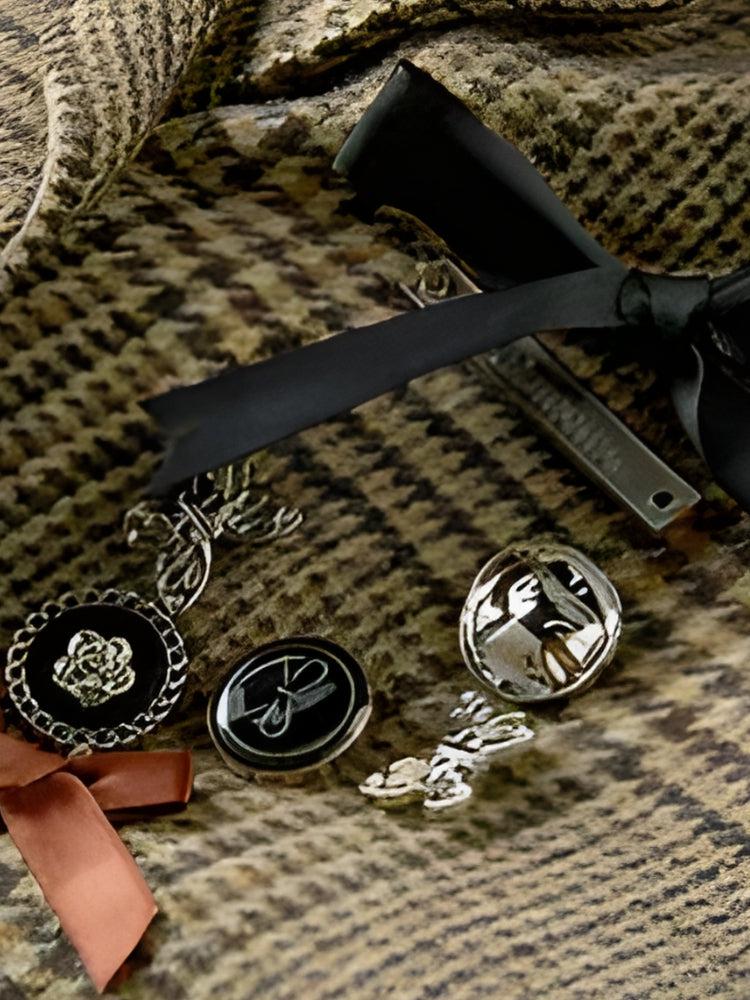 Immerse yourself in the scholarly charm of dark academia with this plaid jacket and skirt set. The ensemble includes a jacket with accessory and ribbon details at the chest, and a matching pleated mini skirt. Ideal for college or school, it embodies a cool, intellectual vibe for the fall season.