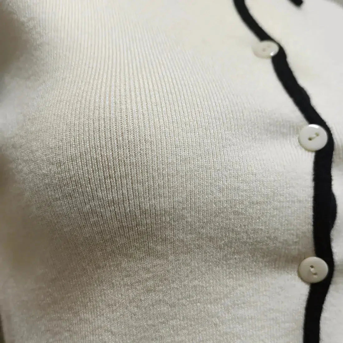 Defined by its clean lines and contrasting black trim, the set offers a sophisticated silhouette. The cropped cardigan with button details pairs beautifully with the high-waisted mini skirt, creating a seamless look that’s both stylish and functional. Perfect for transitioning from day to evening wear, it provides a polished ensemble that’s effortlessly versatile.