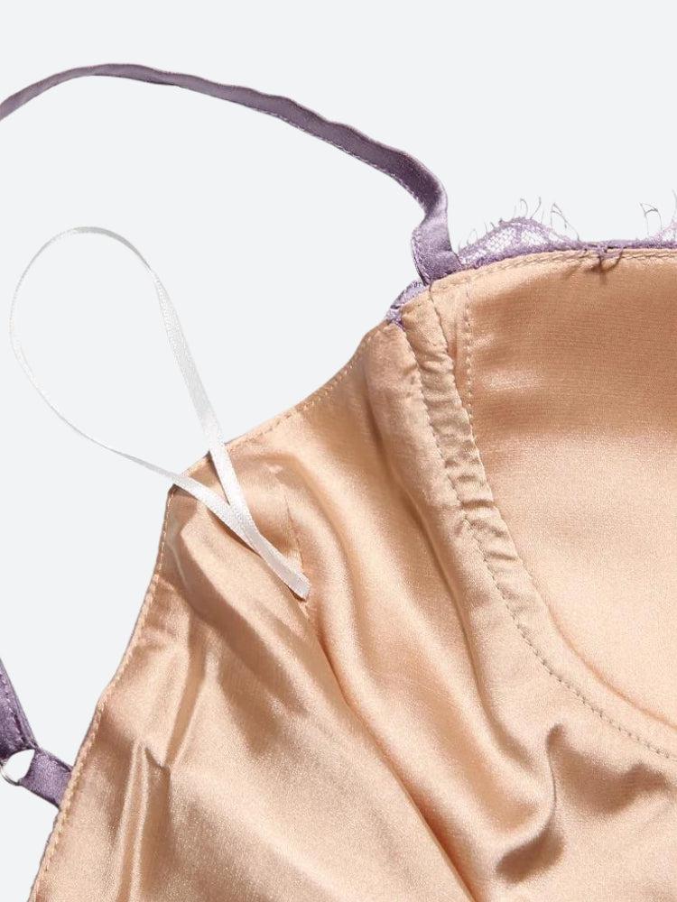 The delicate lace overlay in a striking lavender hue creates a romantic and sophisticated look, while the underwire detail provides structure and support. The fitted silhouette flatters the figure, and the adjustable spaghetti straps ensure a comfortable fit. Ideal for special occasions or a night out, this dress promises to turn heads with its timeless beauty and modern charm.