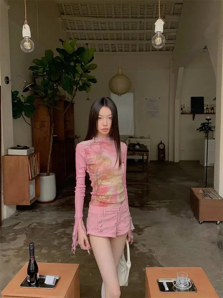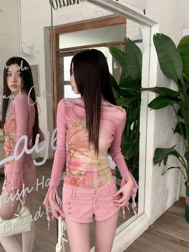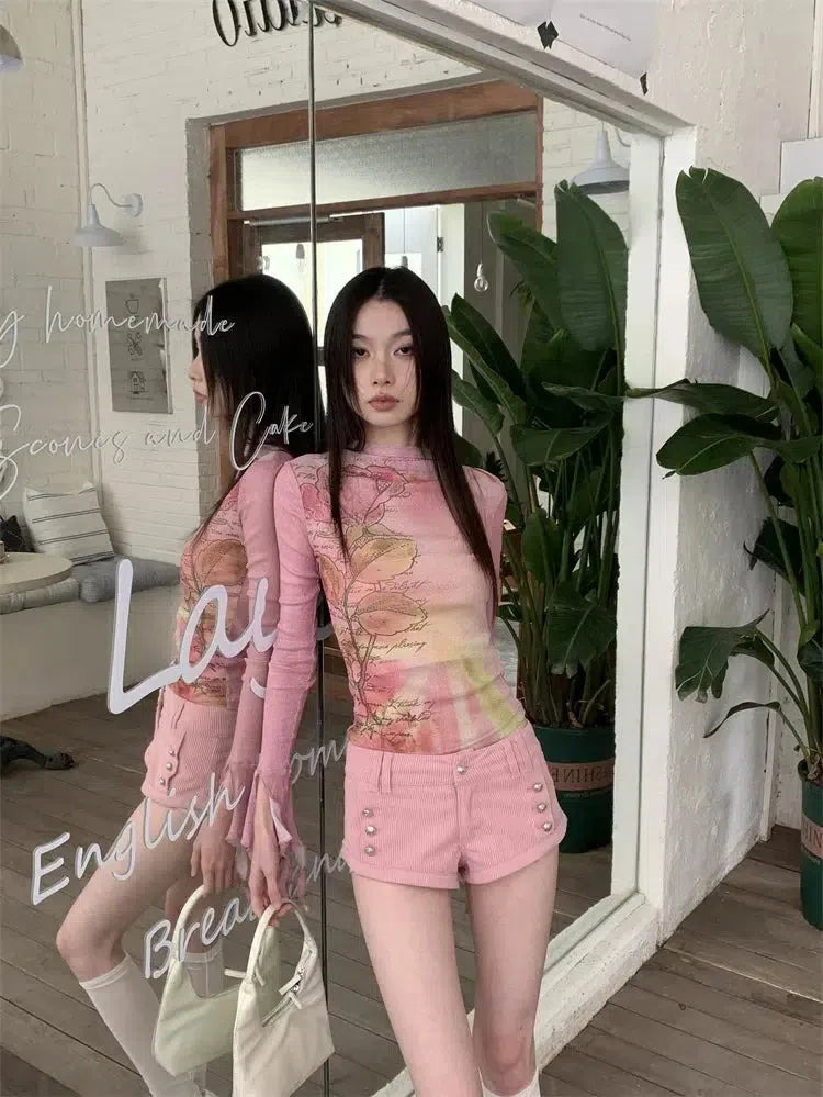 Fairycore Floral Ruffled Cuff Top