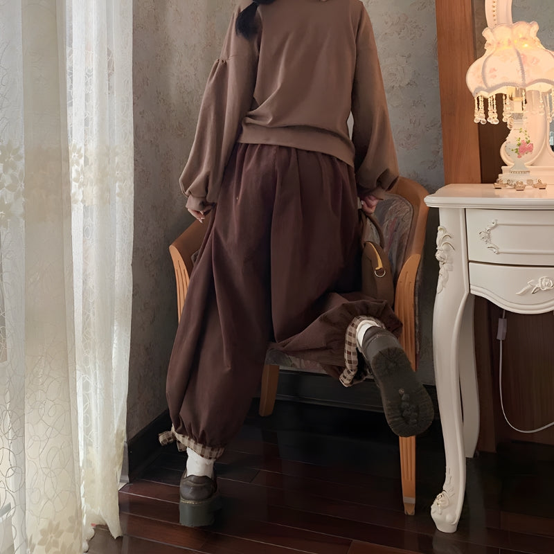 These Fairycore Floral Corduroy Pants combine whimsy and comfort with soft corduroy and delicate floral accents. The wide-leg design, adjustable drawstring hems, and playful details make them perfect for cozy, vintage-inspired looks.