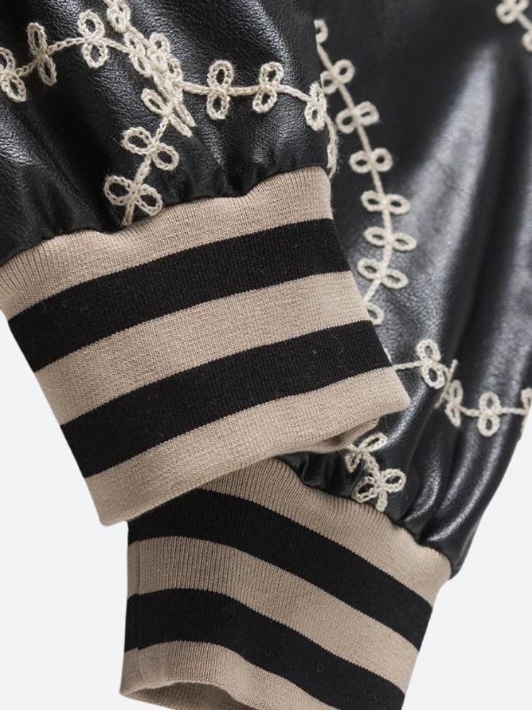 This Floral Embroidered Bomber Jacket is a stylish fusion of streetwear and delicate detailing. Featuring intricate floral embroidery on the front, this jacket adds a touch of nature-inspired elegance to a classic, varsity-style design. Its oversized fit provides a relaxed, yet fashionable look perfect for layering over any casual outfit.