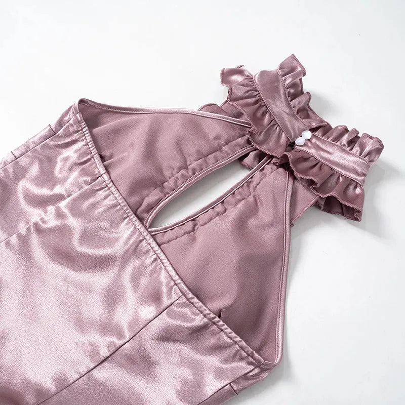 All eyes on you in this dreamy halter top. Crafted with a metallic sheen, front keyhole cutout, and cascading ruffles, it's giving major romantic drama with a Y2K twist.