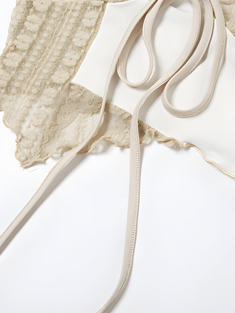Soft meets edgy in this lace asymmetric patchwork top. With a mix of delicate lace, contrast panels, and raw hems, it brings effortless coquette vibes. The adjustable front tie adds detail while the asymmetrical lace trim gives it that undone Y2K feel—perfect for casual days or layered grunge fits.
