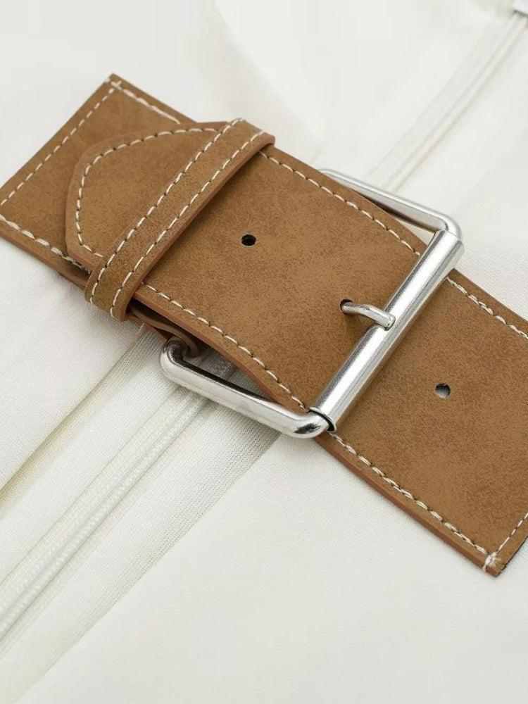 Envision it capturing attention with its bold neckline and cinched silhouette. This statement piece flatters and turns heads, perfect for those who dare to stand out. Elegant yet daring, it's a must-have for a sophisticated wardrobe with an edge.