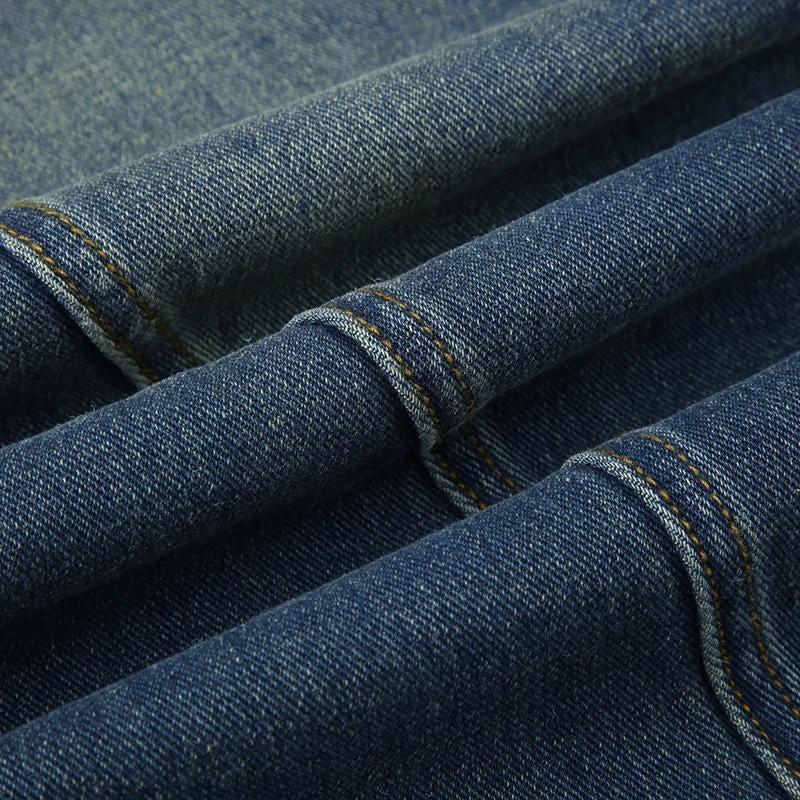 These jeans feature a distinct low-rise waist with stylish cut-out details on the hips, adding a bold and daring touch to the design. The jeans have a straight-leg fit that complements the edgy cut-outs, providing both comfort and a fashion-forward look. The dark denim fabric enhances the overall aesthetic, making these jeans a standout piece for anyone looking.