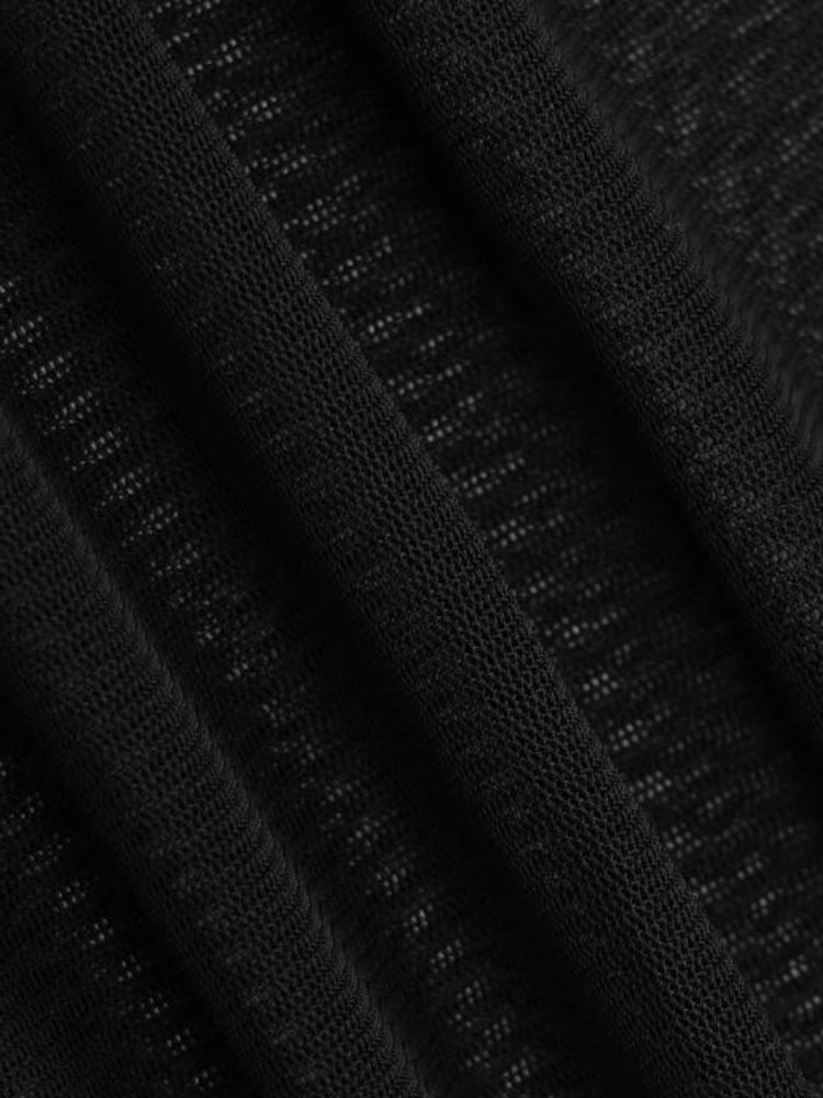 This striking bodysuit features a sheer mesh design that exudes bold, edgy vibes. Perfect for a night out, the unique pattern adds a daring touch to your look. Pair it with high-waisted pants or a skirt to create a captivating outfit that's sure to turn heads. Ideal for those who love to make a statement with their fashion choices.
