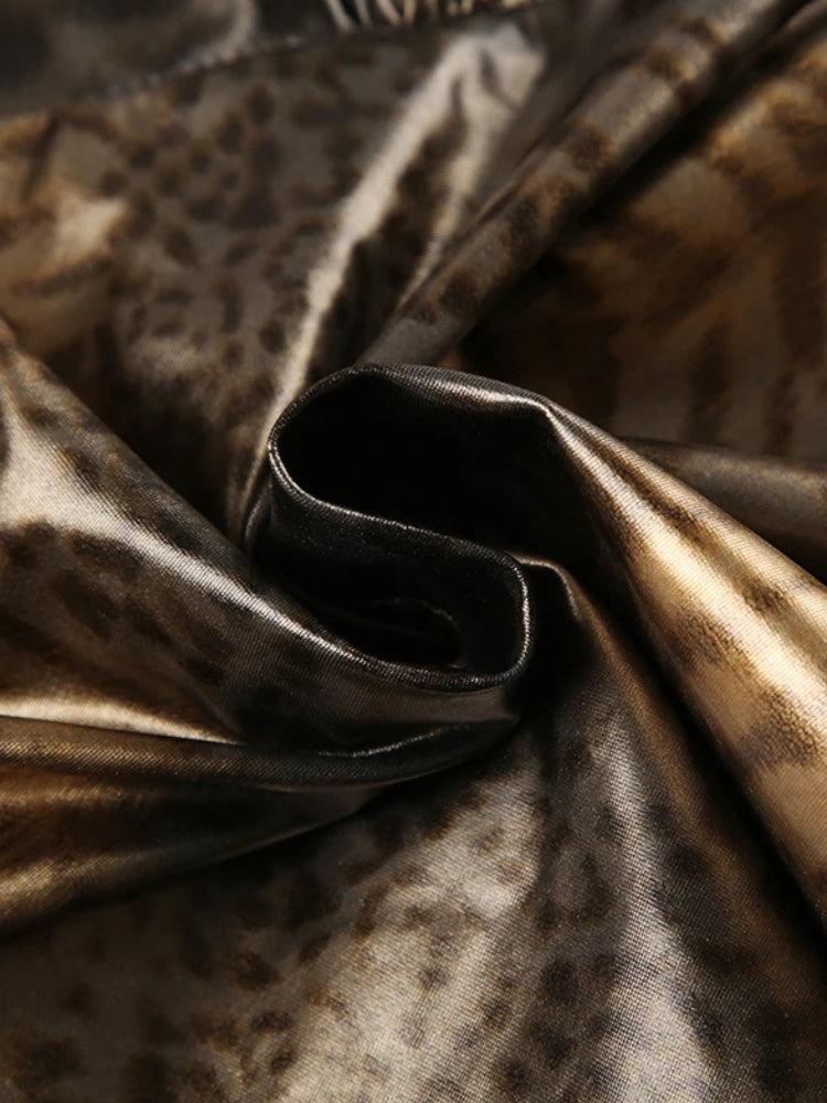 Unleash your inner baddie with this sultry, metallic leopard cami. The plunging neckline, shimmer fabric, and open-back design scream main character energy—perfect for nights out, festival fits, or Insta slayage.