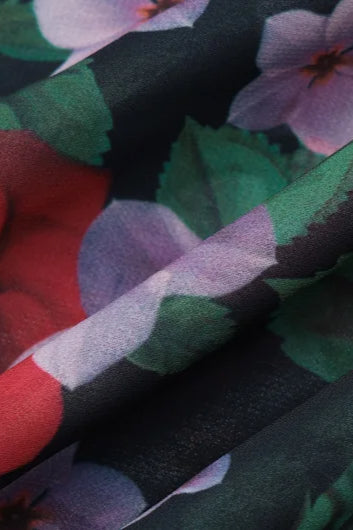 Floral Print Draped Sleeveless See-Through Maxi Dress