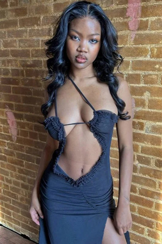 Asymmetric Ruched Cut Out Sleeveless Maxi Dress