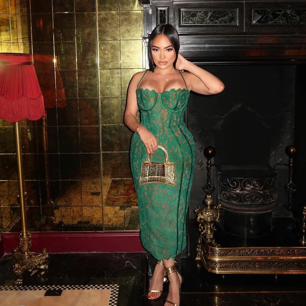 Elegant Spaghetti Strap V Neck Lace Formal Occasion Dress for Christmas Party