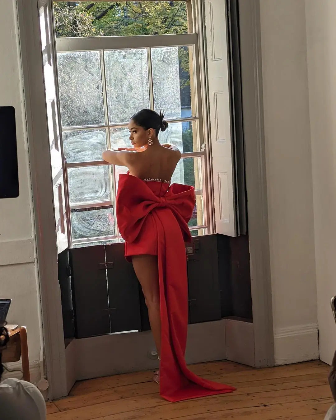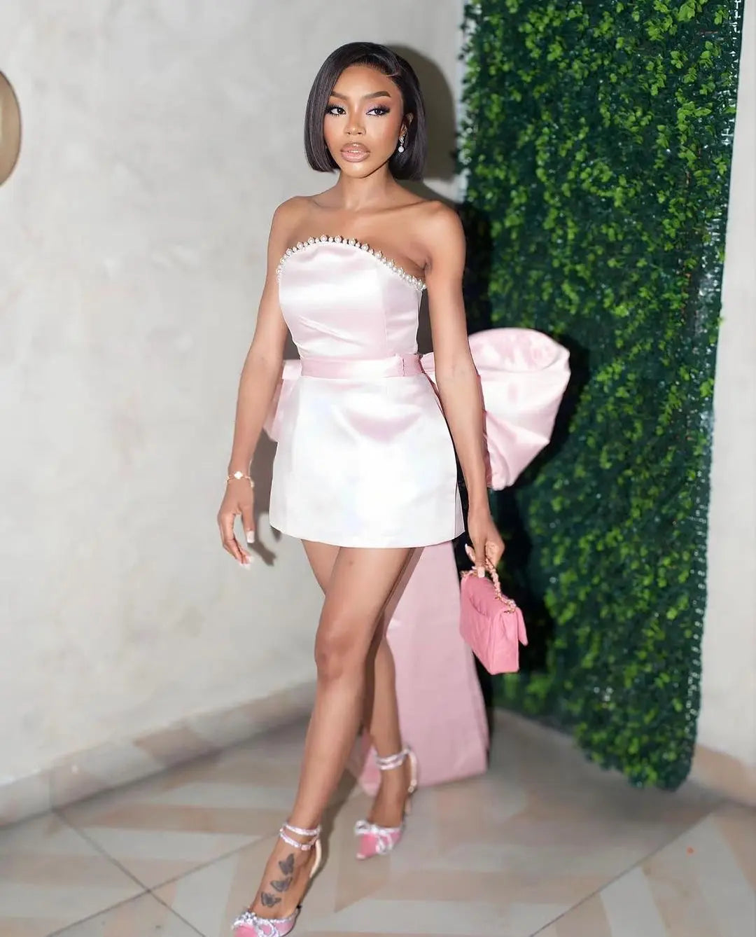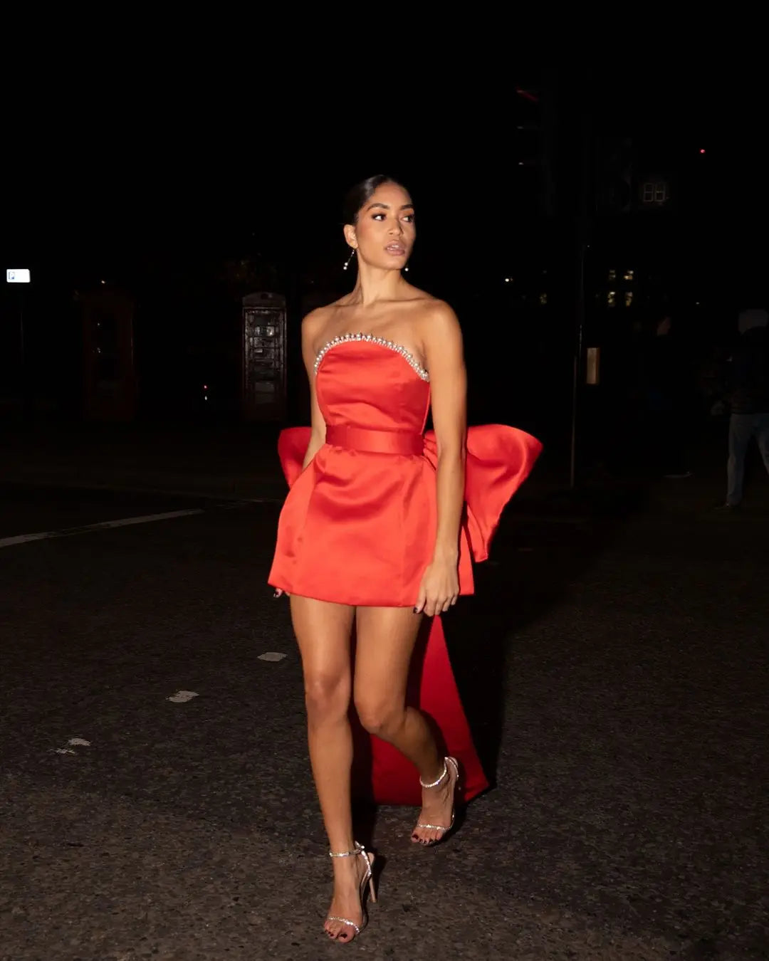 Green Pink Red Satjson Mini Party Dress with Detachable Bow