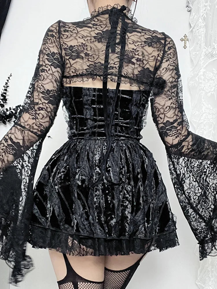 Gothic Silky Halter Sleeveless Bodycon Club Retro V Mini Draped Velvet Cocktail Bandage Neck Outfit