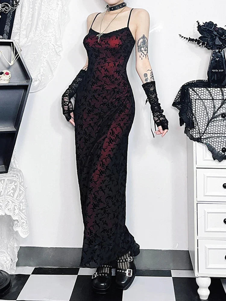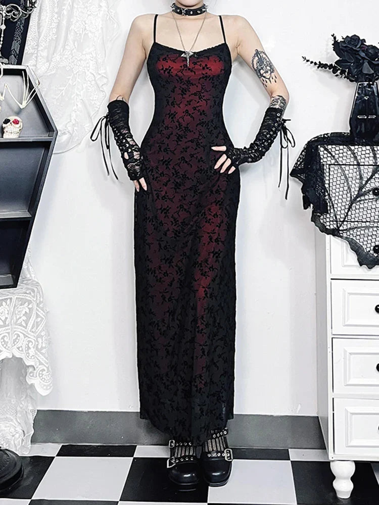 Floral Sleeveless Lolita Vintage Grunge Camisole Harajuku Witchy Fairy Flocking Gown