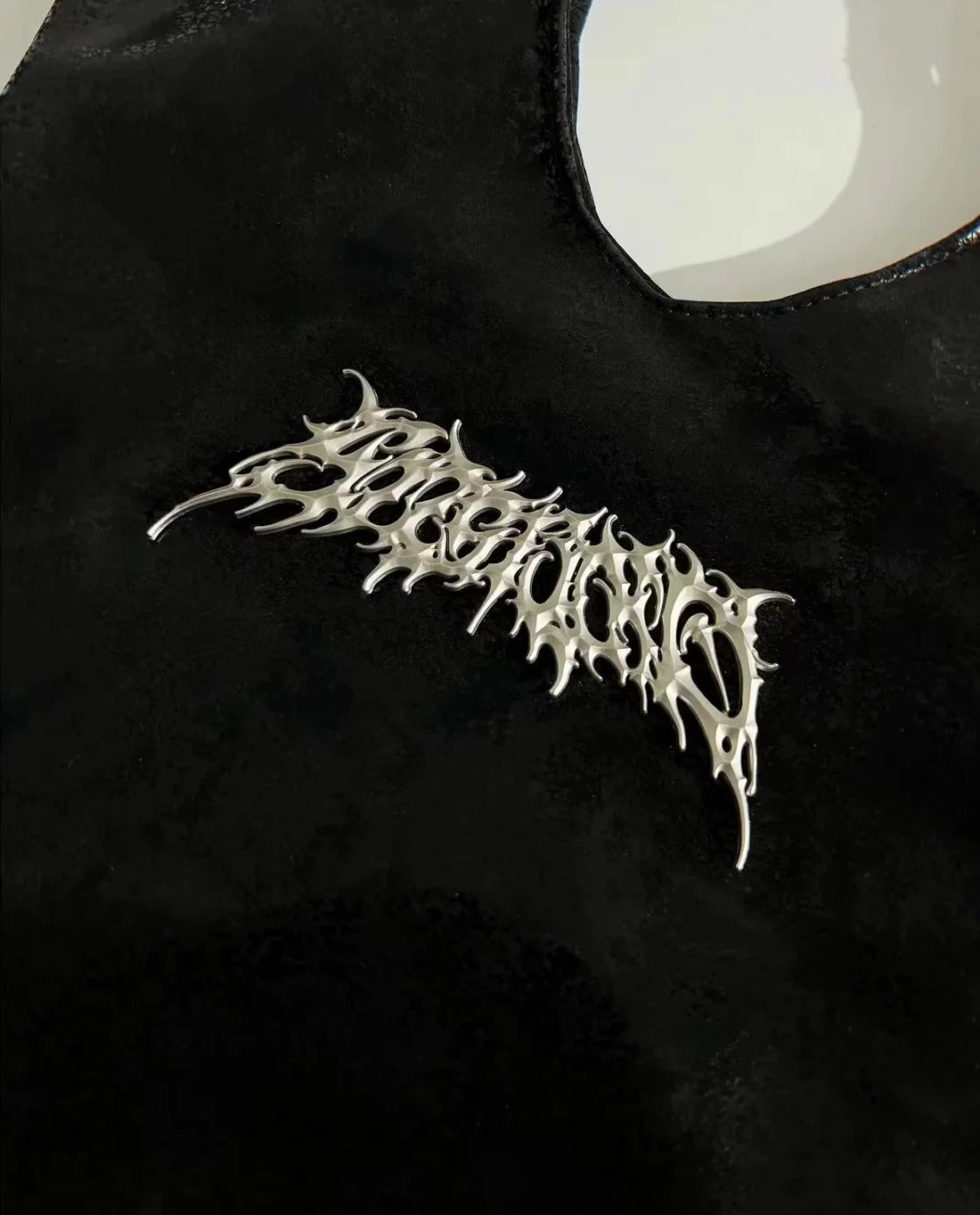 Gothic Grunge Black PU Leather Large Capacity Shoulder Bag