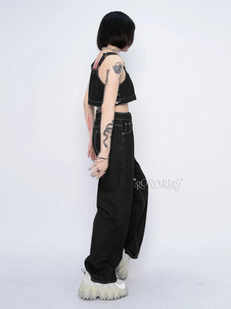 White Seamed Denim Casual Adjustable Bib Pocket Pant
