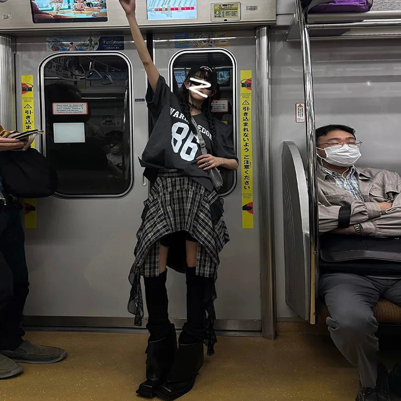 Fashion Vintage Plaid Ribbon High Waist Irregular A-Line Mini Skirt