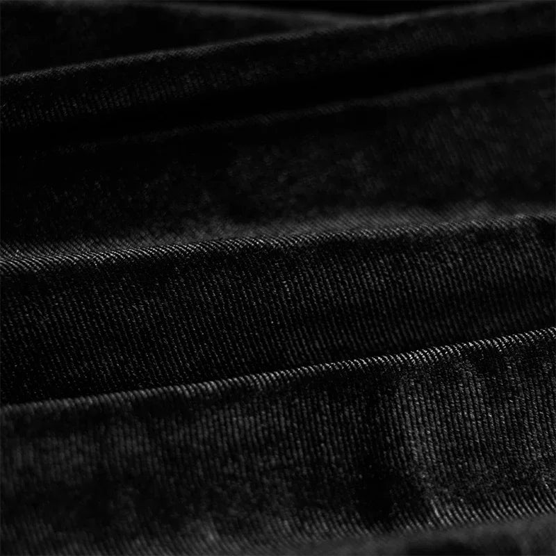 1. The main fabric is black velvet with white stripe jacquard woven fabric