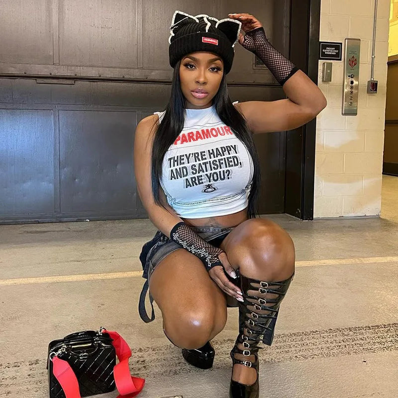 Gothic Letter Print White Harajuku Punk Crop Top