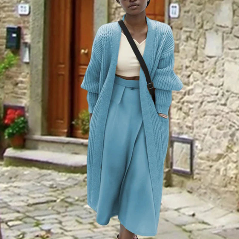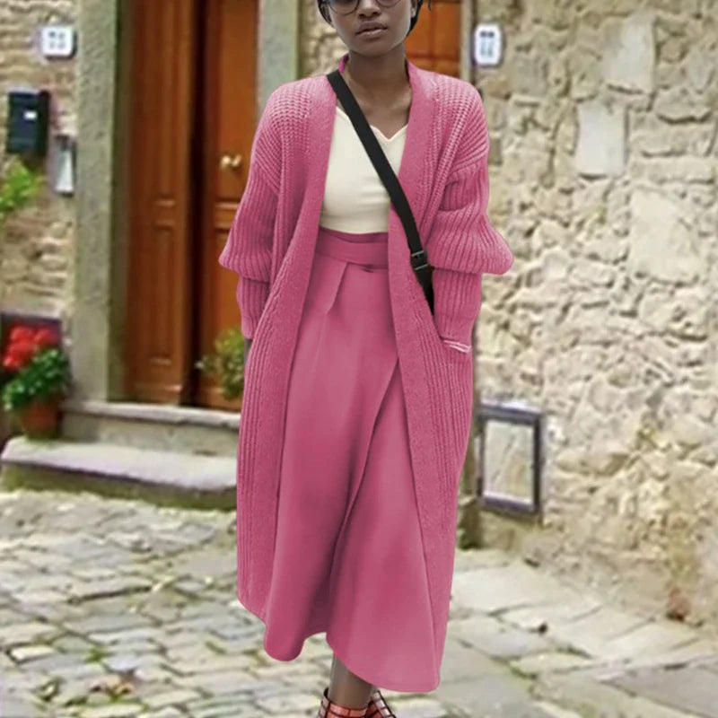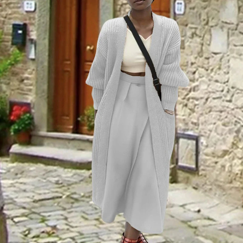 Solid Rib Knitting V-neck Casual Long Sleeve Pocket Warm Autumn Winter Coats