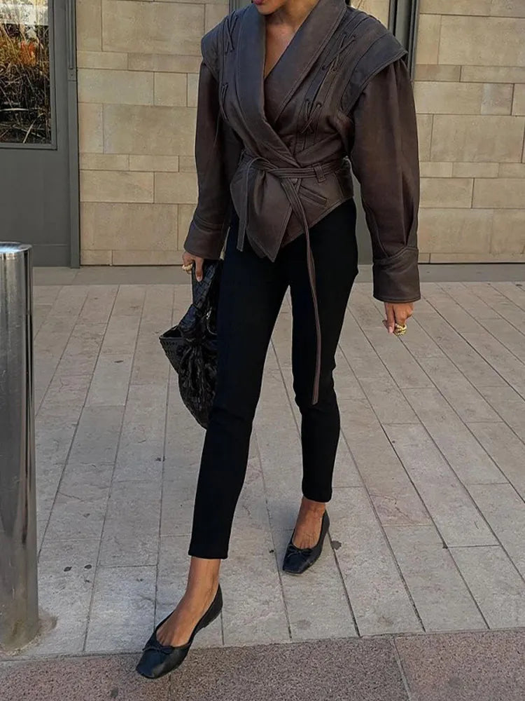 Vintage Lapel Long Sleeved Lace Fashion Solid Pocket Coats