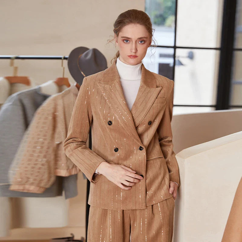 Corduroy Sequins Formal Office Business Autumn Winter Elegant Blazer