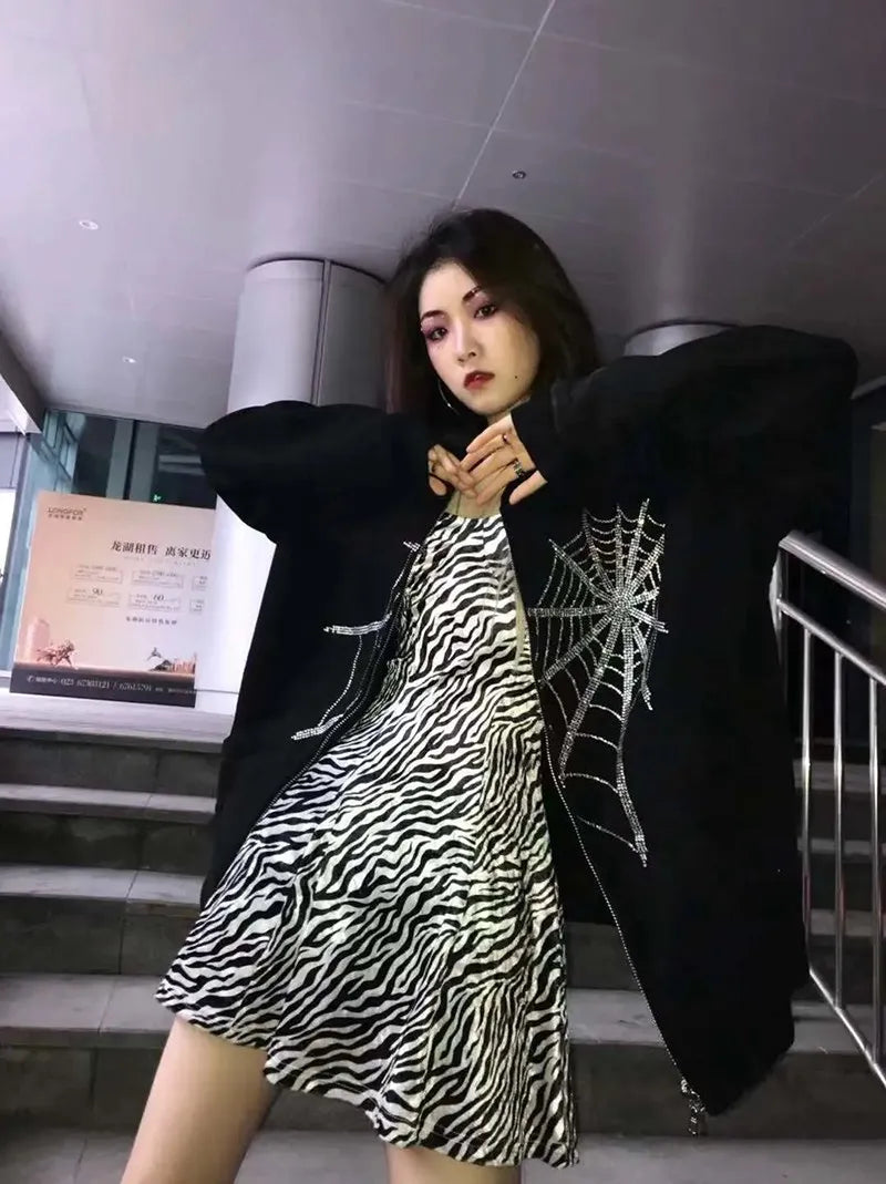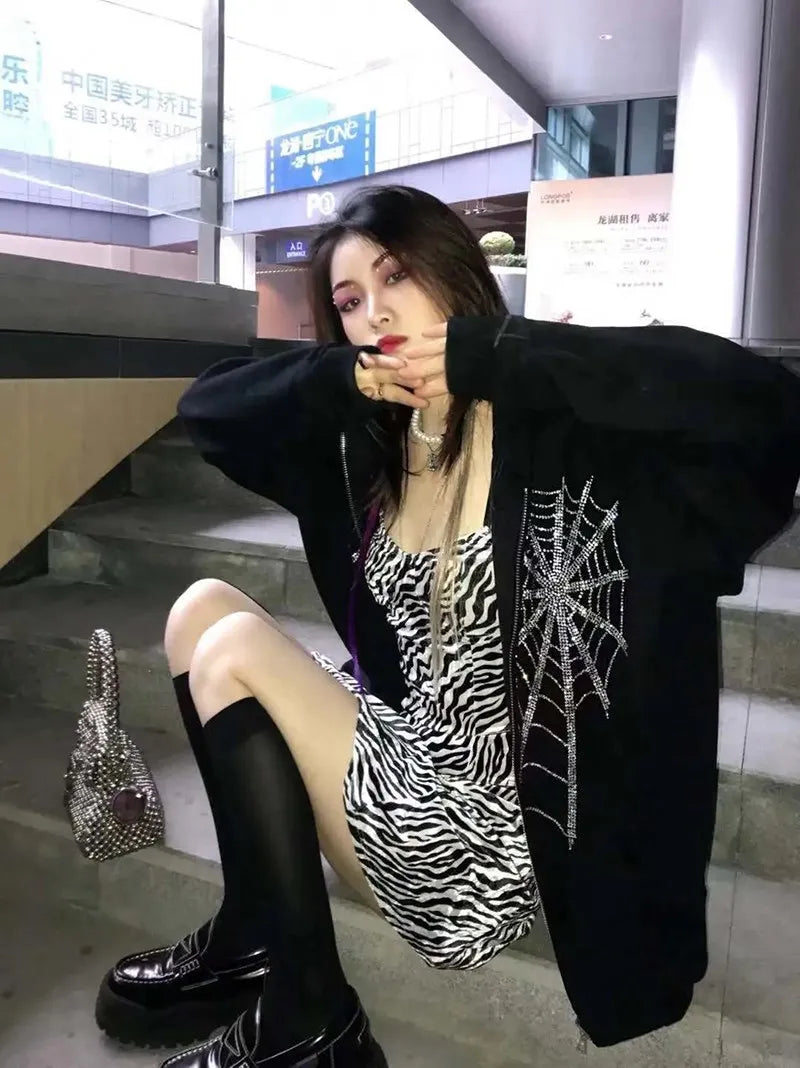 Gothic Punk Spider Web Dark Grunge Zipper Hoodie