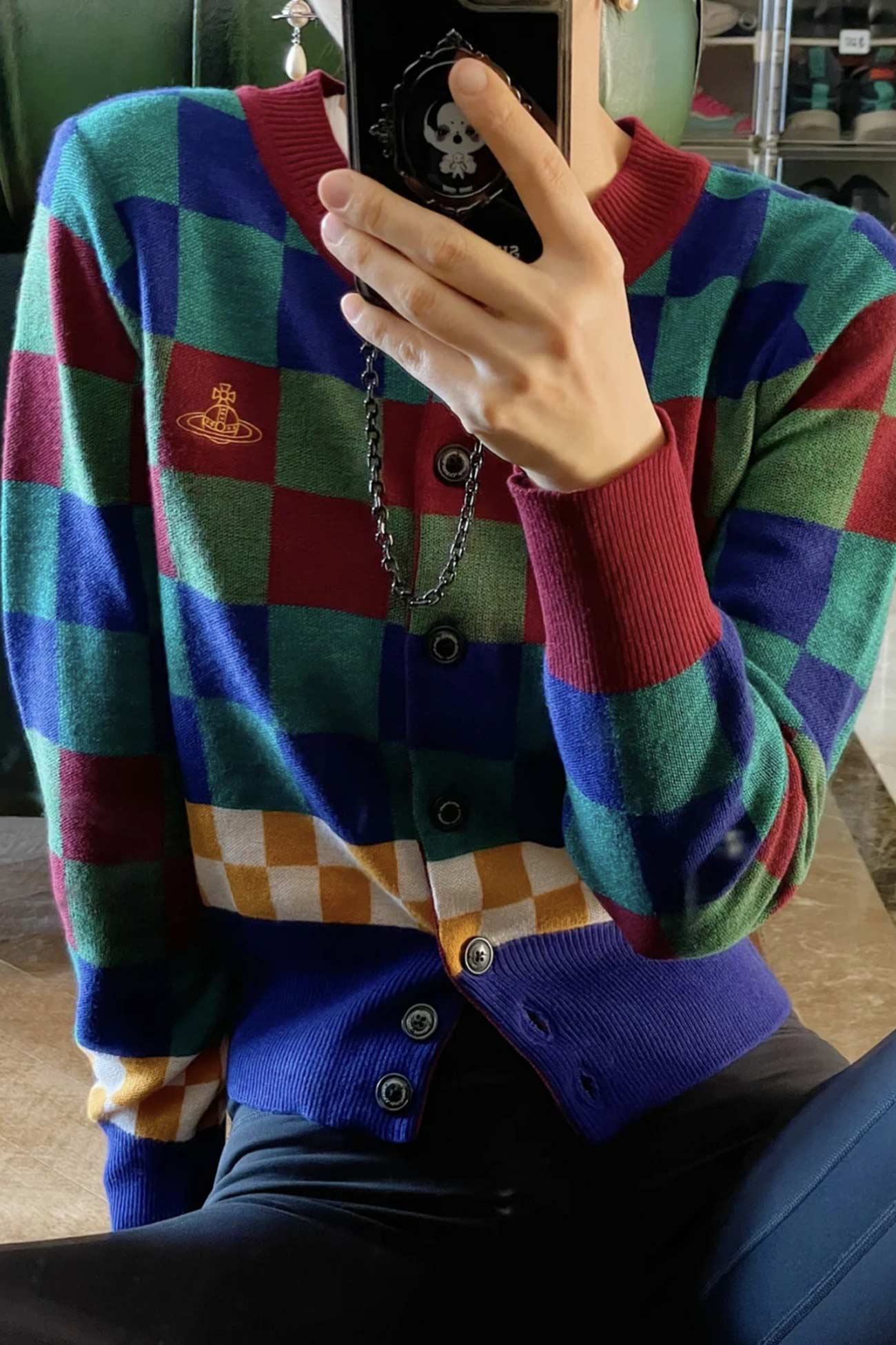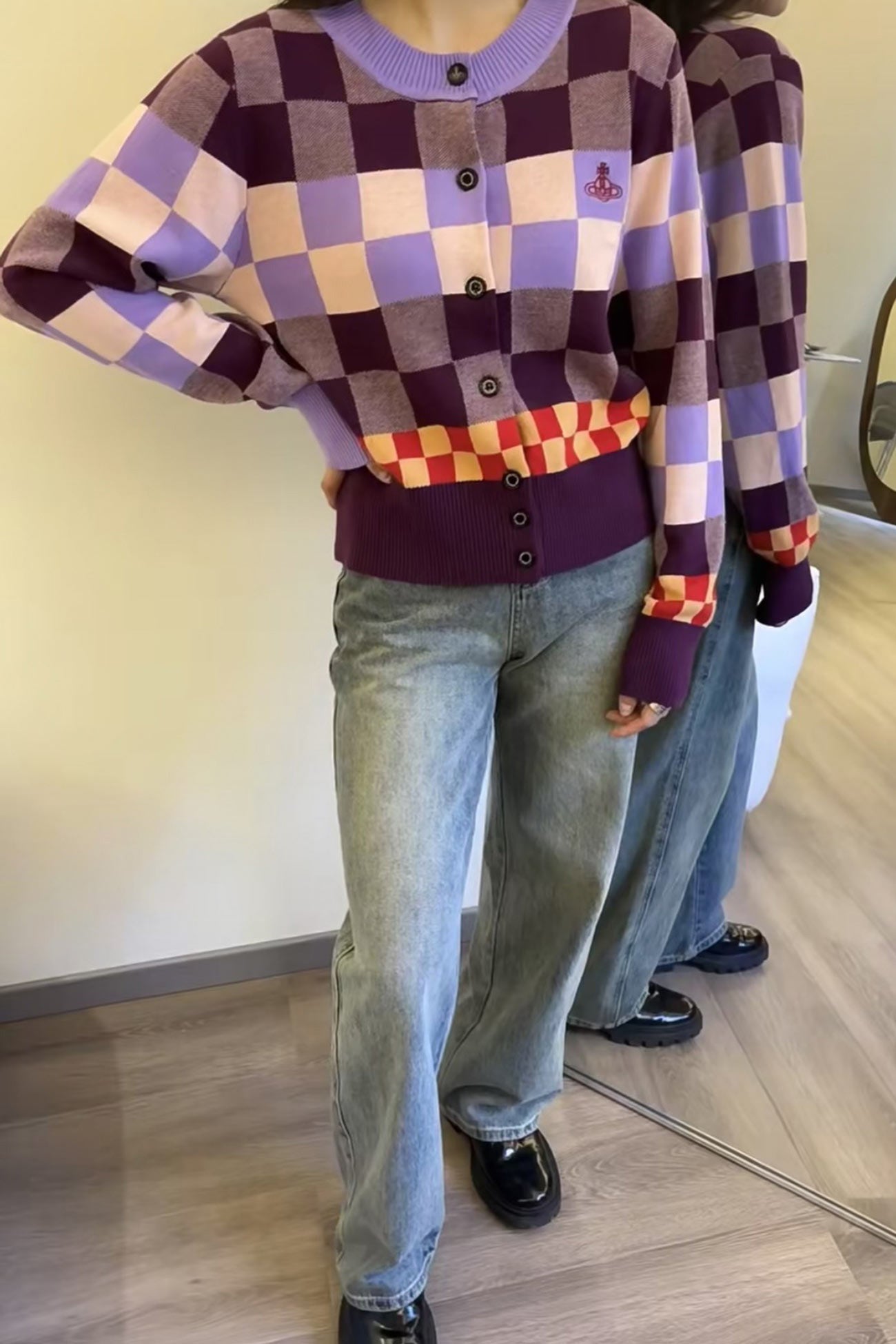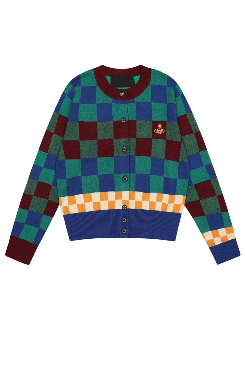 Contrast Plaid Knit Cardigan