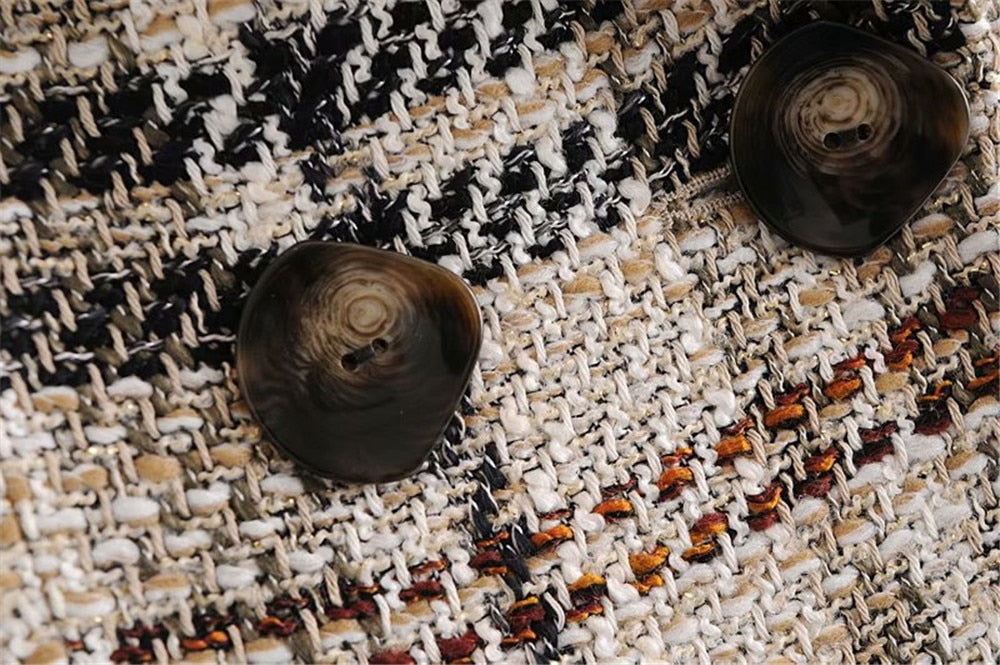 MARTA CHECK BLAZER & SKORT crafted from quality thick cotton mix fabric, decorated with vintage-style buttons. Finish your look with our SARRA OVER THE KNEE BOOTS