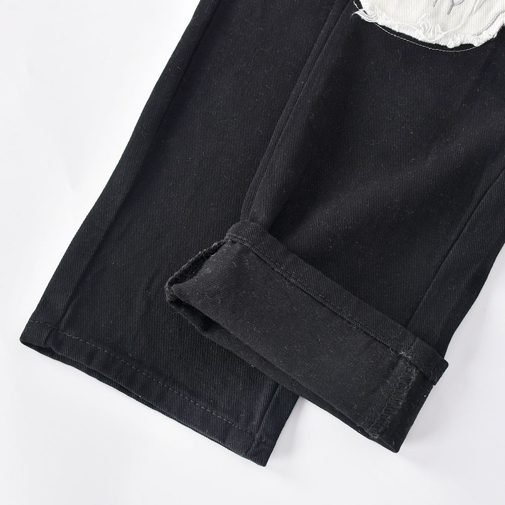 KittenAlarm - Womens Fashion Skull Patterned Low Rise Jeans Streetwear Women Clothing Black Denim Trousers Cyber Y2k Aesthetic Goth Pants C82-DI53