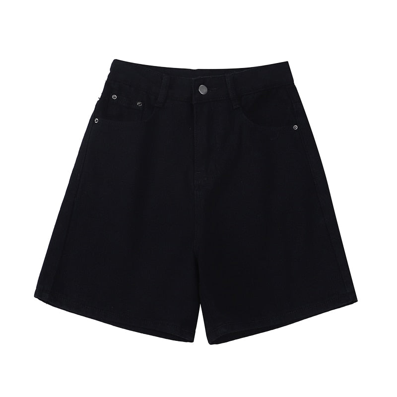 KittenAlarm - Women's Short Summer High Waist Jeans Baggy Straight Five Points Trousers Streetwear Vintage Mom Denim Wide Leg Short Pants