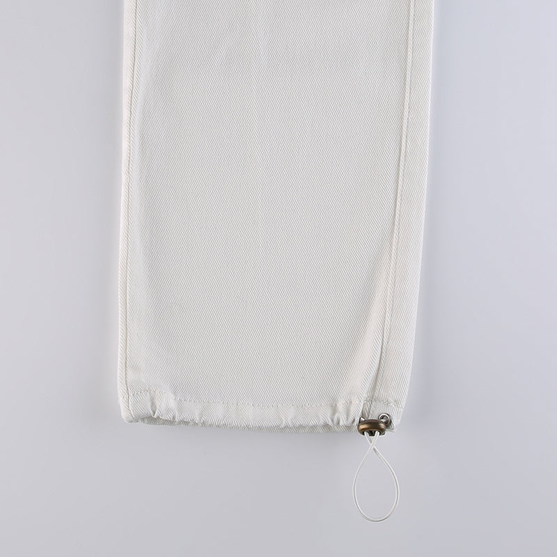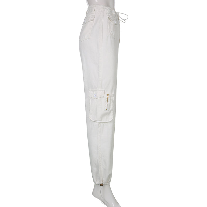 KittenAlarm - Women Spring Fashion Multi Pockets White Cargo Pants Women Adjustable Low Waist Baggy Wide Leg Jeans Oversized Casual Trousers Retro Bottoms Iamhotty