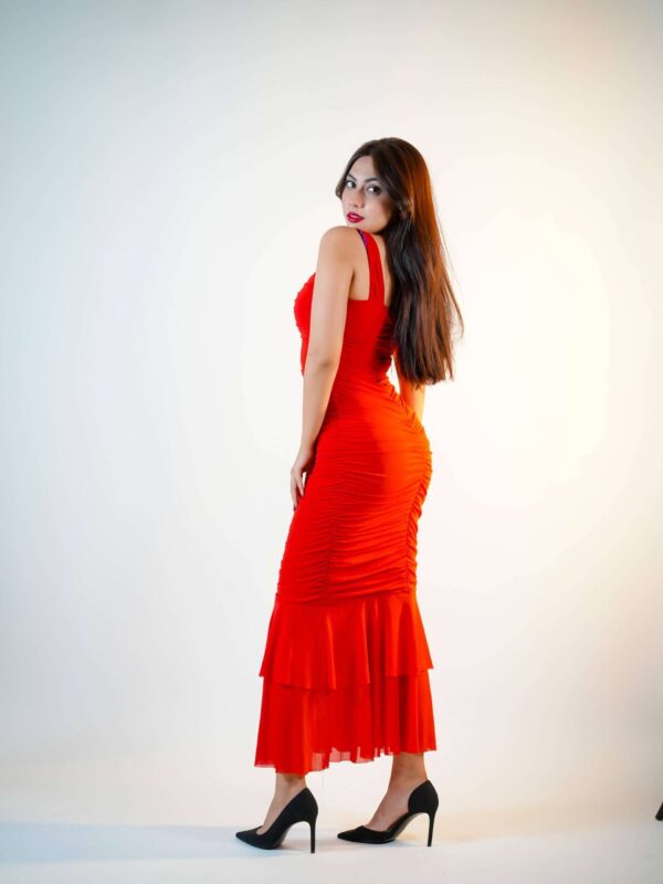 Ruched and ruffled, our Kayla dress is the perfect outfit for brunch parties and date nights. The outfit features ruches and double layered frills that flatters all body types.