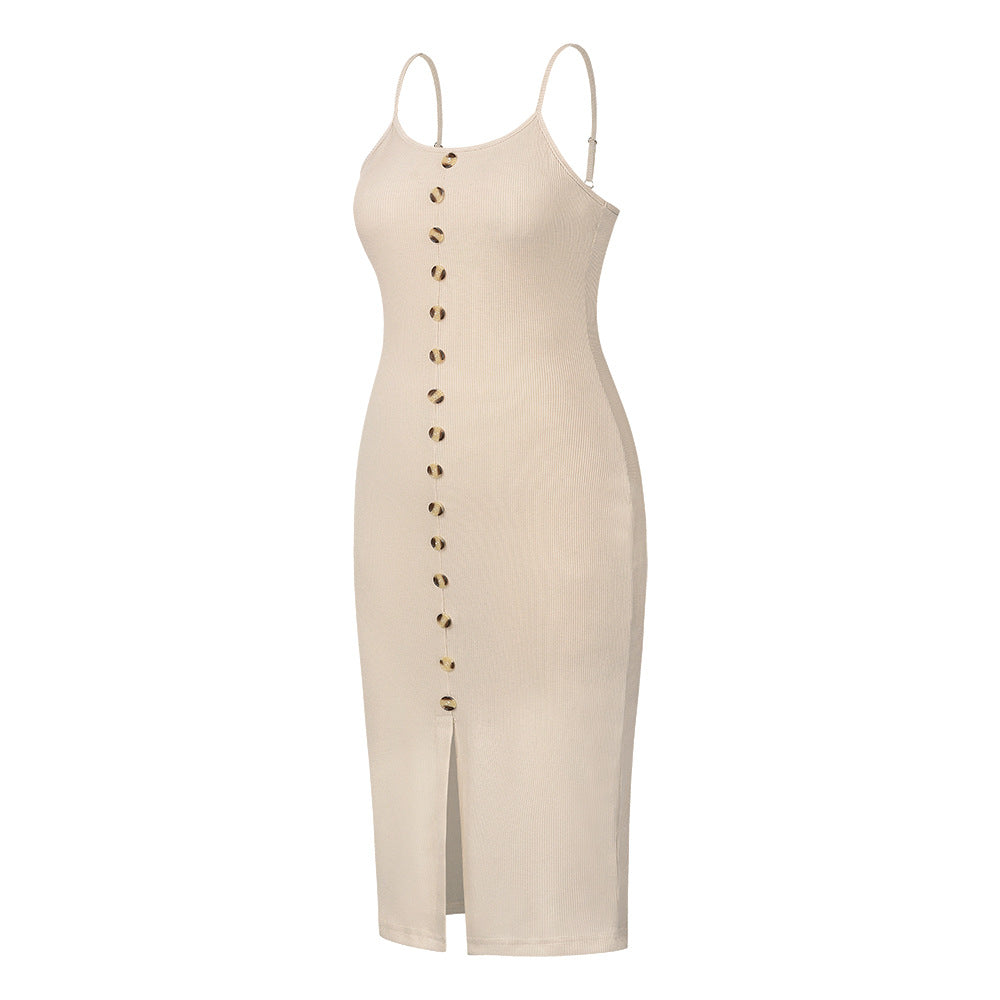 //Best Seller// New Color// Chill out in our totally flattering Scarlett Ribbed Knit Midi Dress this summer! This dusty blue midi follows your curves with a fitted silhouette. adjustable scooped neckline and a front slit. Faux buttons decorate the center to balance the look with a unique and decorative touch! Styled with the Gabi Hoops. Rope Chain Necklace. Compass Coin Necklace. Simple Bangle Bracelet. Chic Crossbody Chain Pouch Bag. and Twiggy Criss Cross Heeled Sandal.
