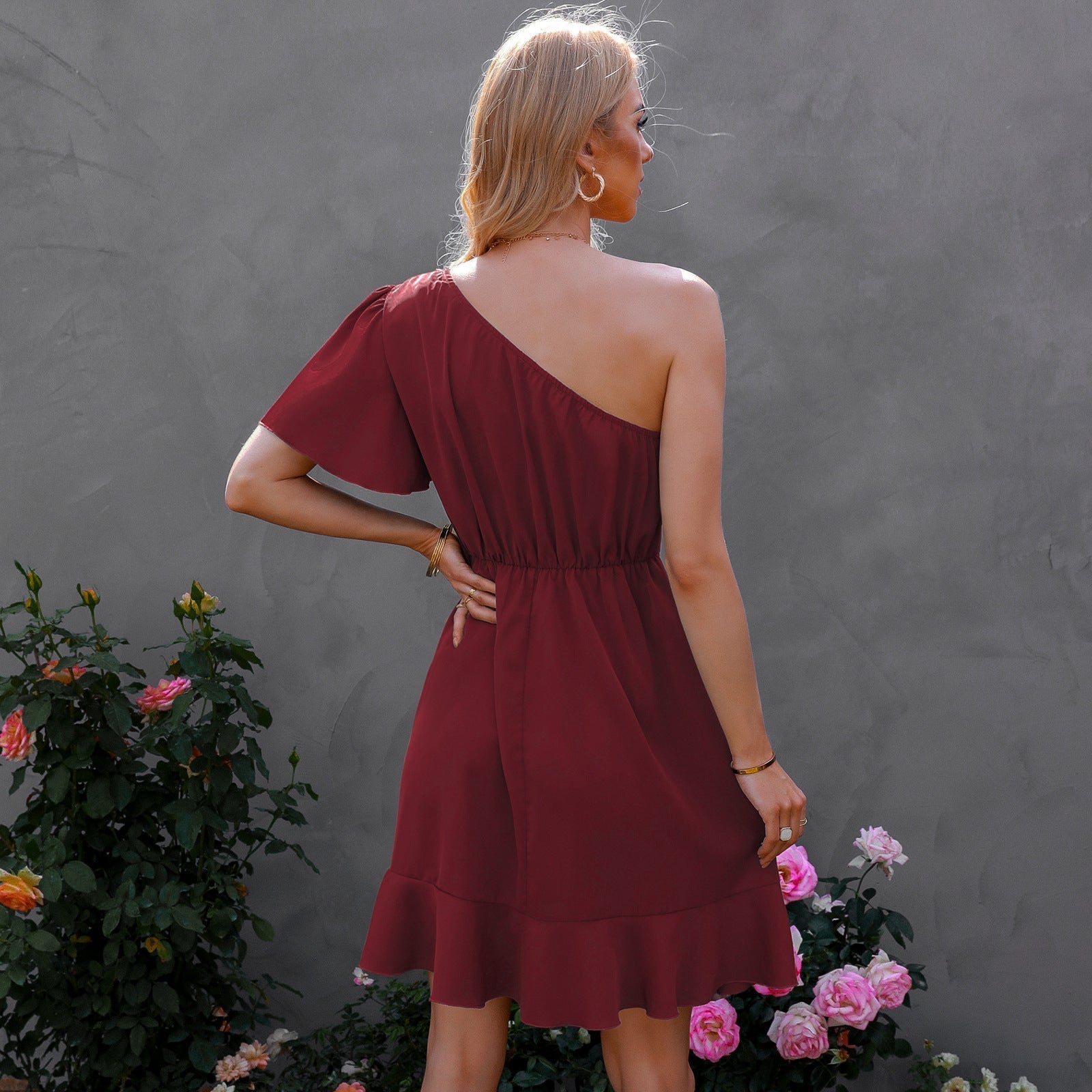 Kaine Satin One Shoulder Ruffle Dress - Red - FINAL SALE