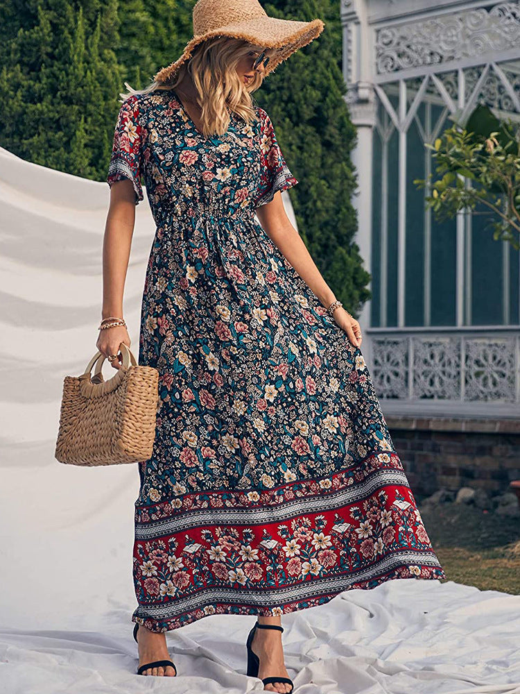 //INSSTREET//Best Selling Silhouette//New Print// Our Cailynn Pocketed Kimono Maxi Dress is updated boho! This plum. salmon. olive. and blush colored dress features a plunging neckline. Styled with the El Dorado Hat. Perfect Hoops. Chloe Mini Necklace. Initial Card Necklace. Simple Bangle Bracelet. Blair Faux Suede Strappy Heeled Sandal. and Stella Crossbody Envelope Zip Clutch.