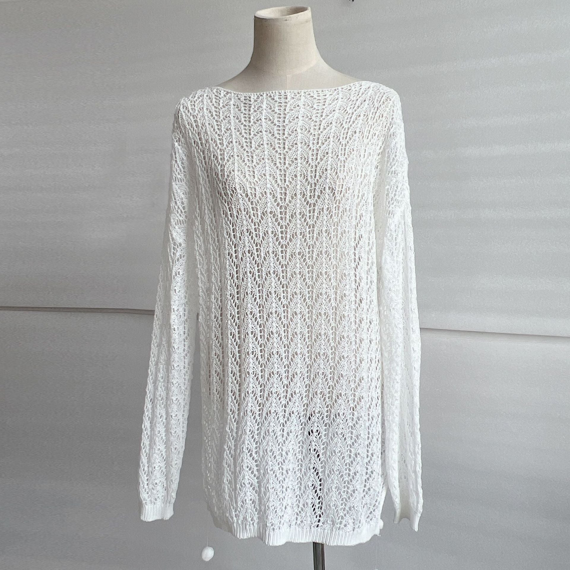 Hop on the crochet trend in the Temecula Sheer Crochet Dress in ivory with a wide neckline and an open back necktie.