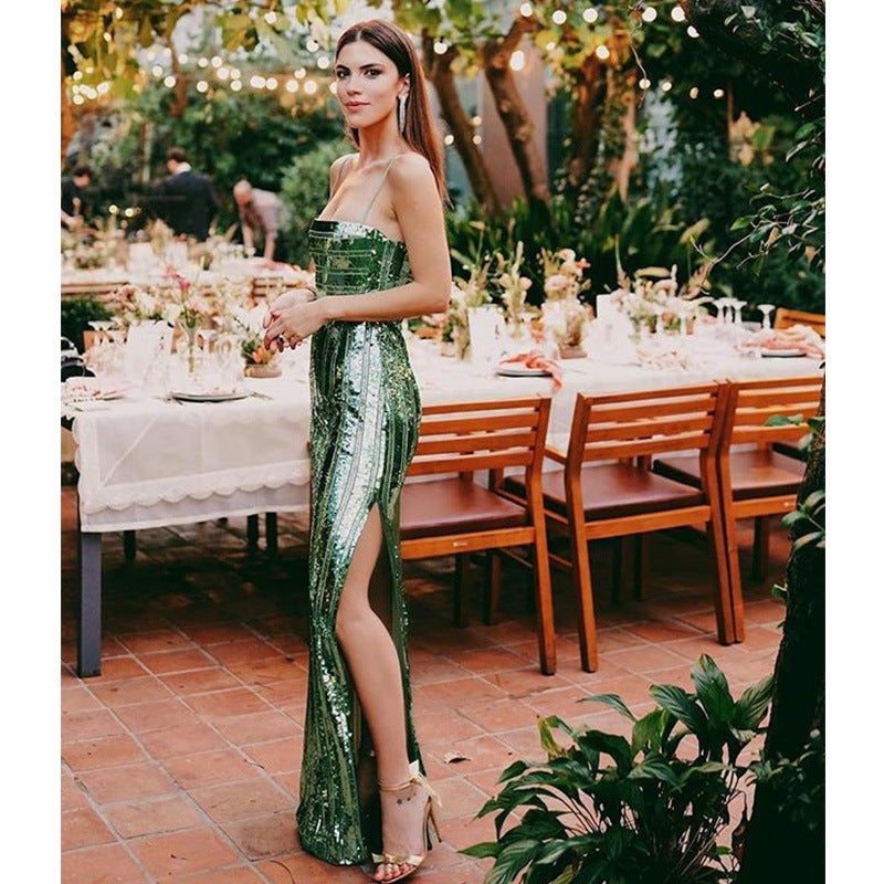 Aleena Satin Striped Cutout Midi Dress - Green