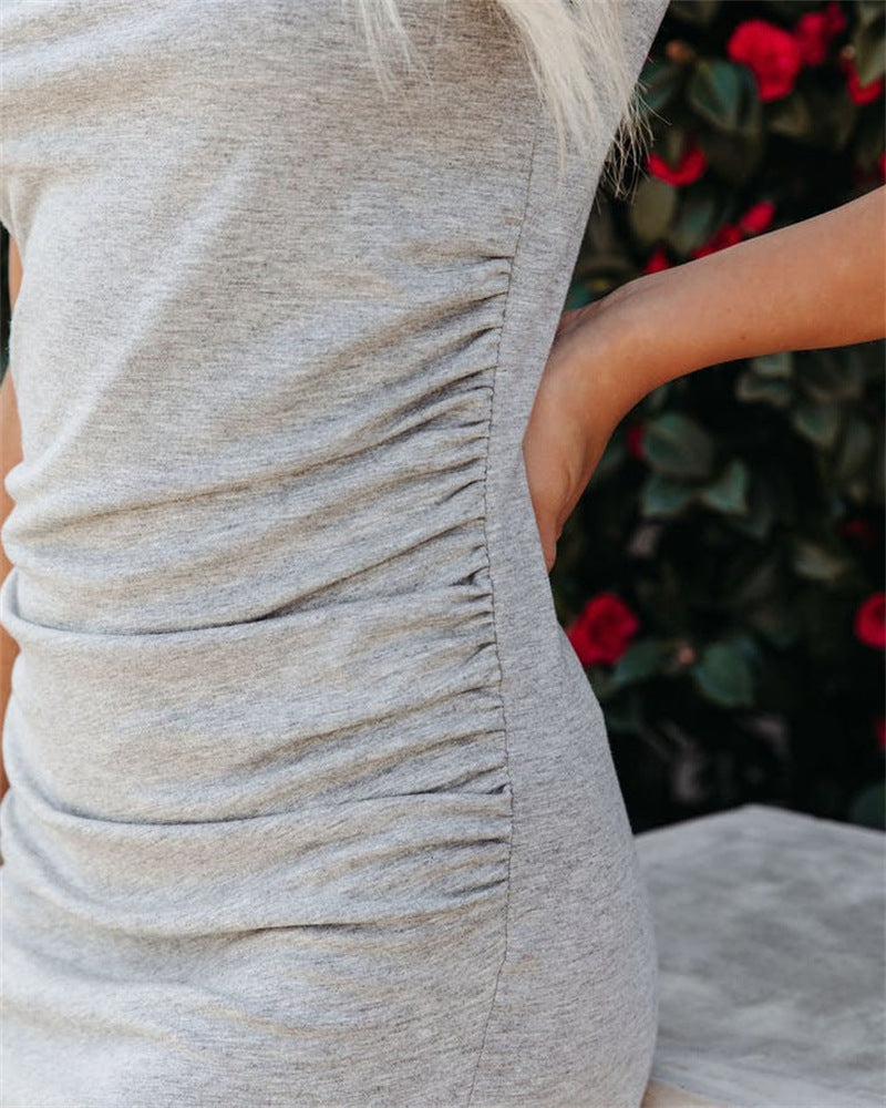 Our Allegra Ruched Knit Tank Dress is ultra-flattering with a slimming fit. Designed with a crew neckline and ruched sides from the hip to the hem. The heathered grey tank dress is functional and versatile enough to go casual with sneakers or elevate with heels! The little grey dress every girl should own. Styled with the Chloe Mini Necklace. French Mini Coin Necklace and the Caitlin Espadrille Sneaker.