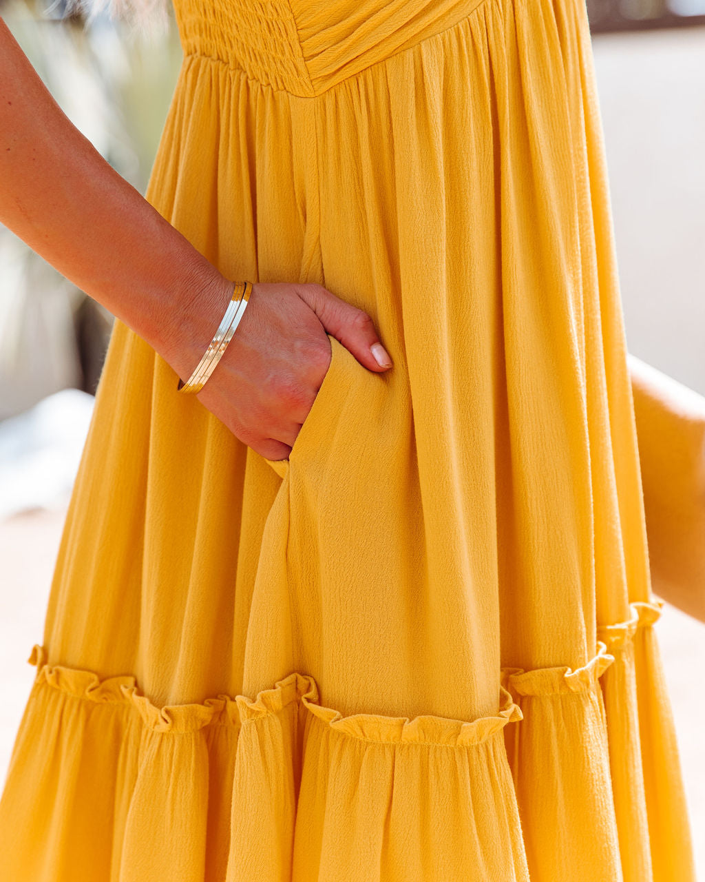 Angelina Pocketed Babydoll Dress - Sunflower