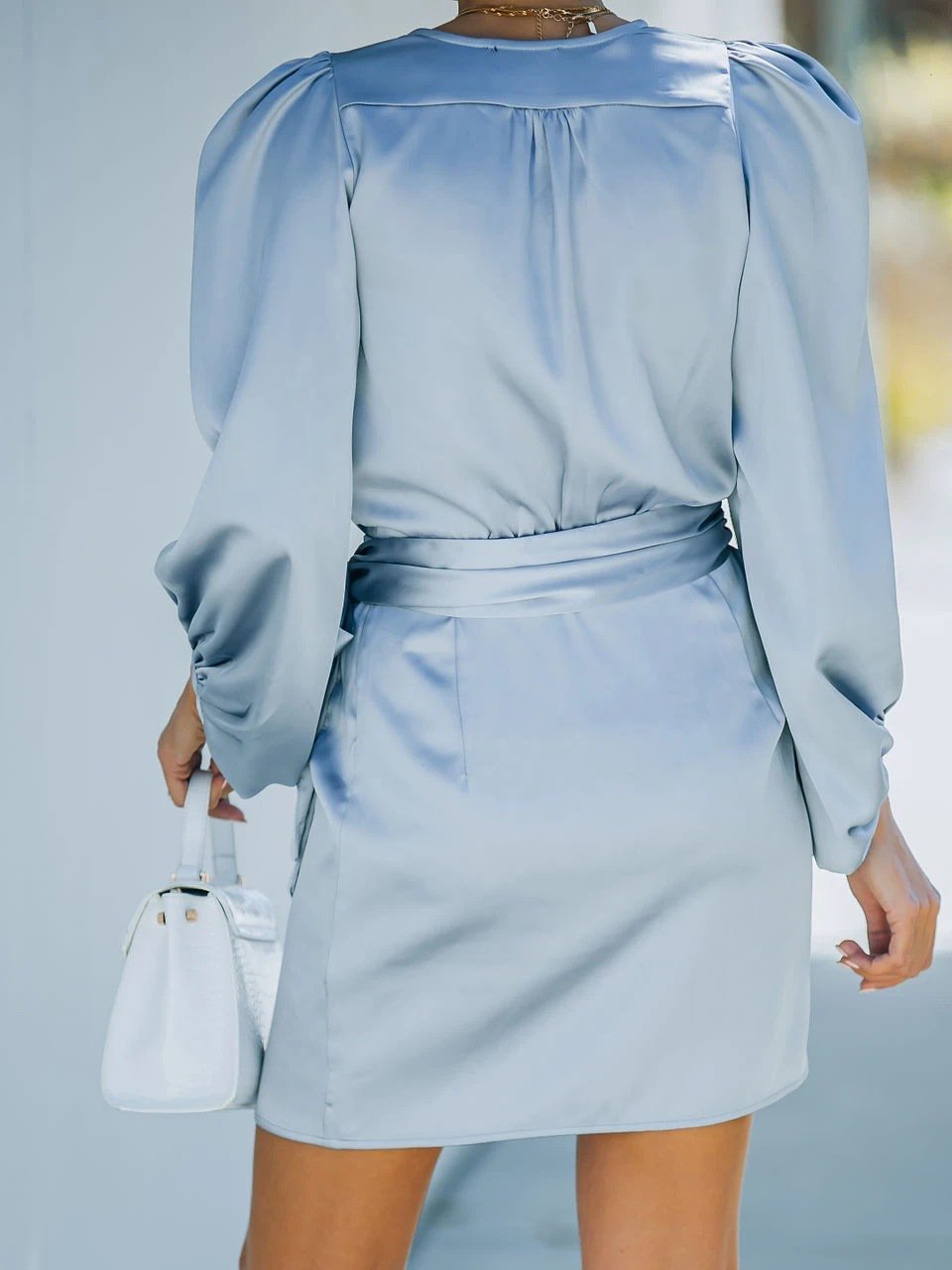V-Neck Slim Lantern Sleeve Mini Dress