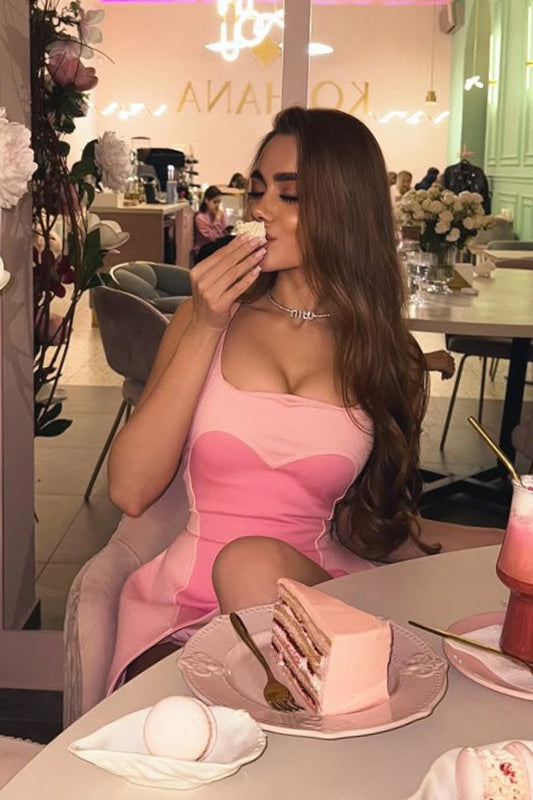 Colorblock Cami Waist-Cinching Mini Party Dress