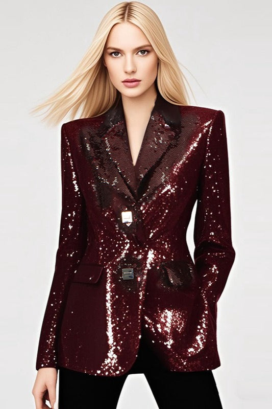 Elegant Sequin V - Neck Long Sleeve Blazer