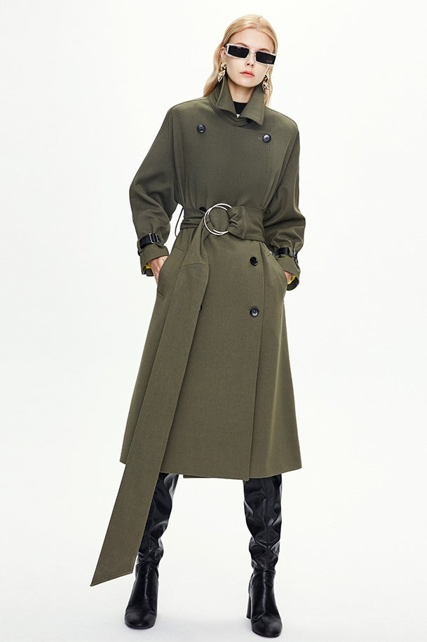 Extra Long Knee Length Ring Detail Overcoat