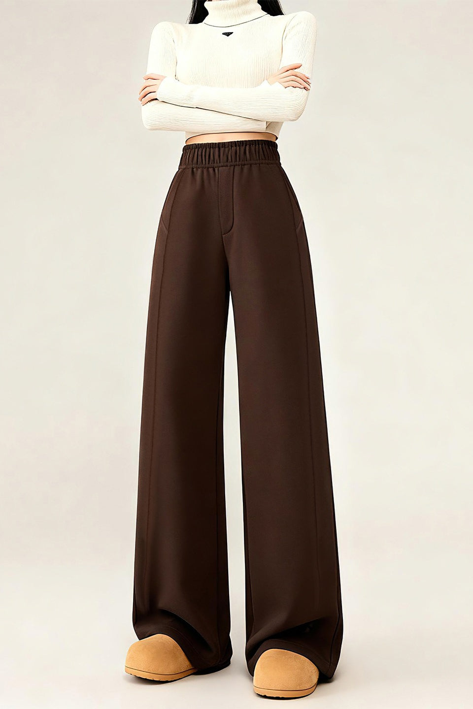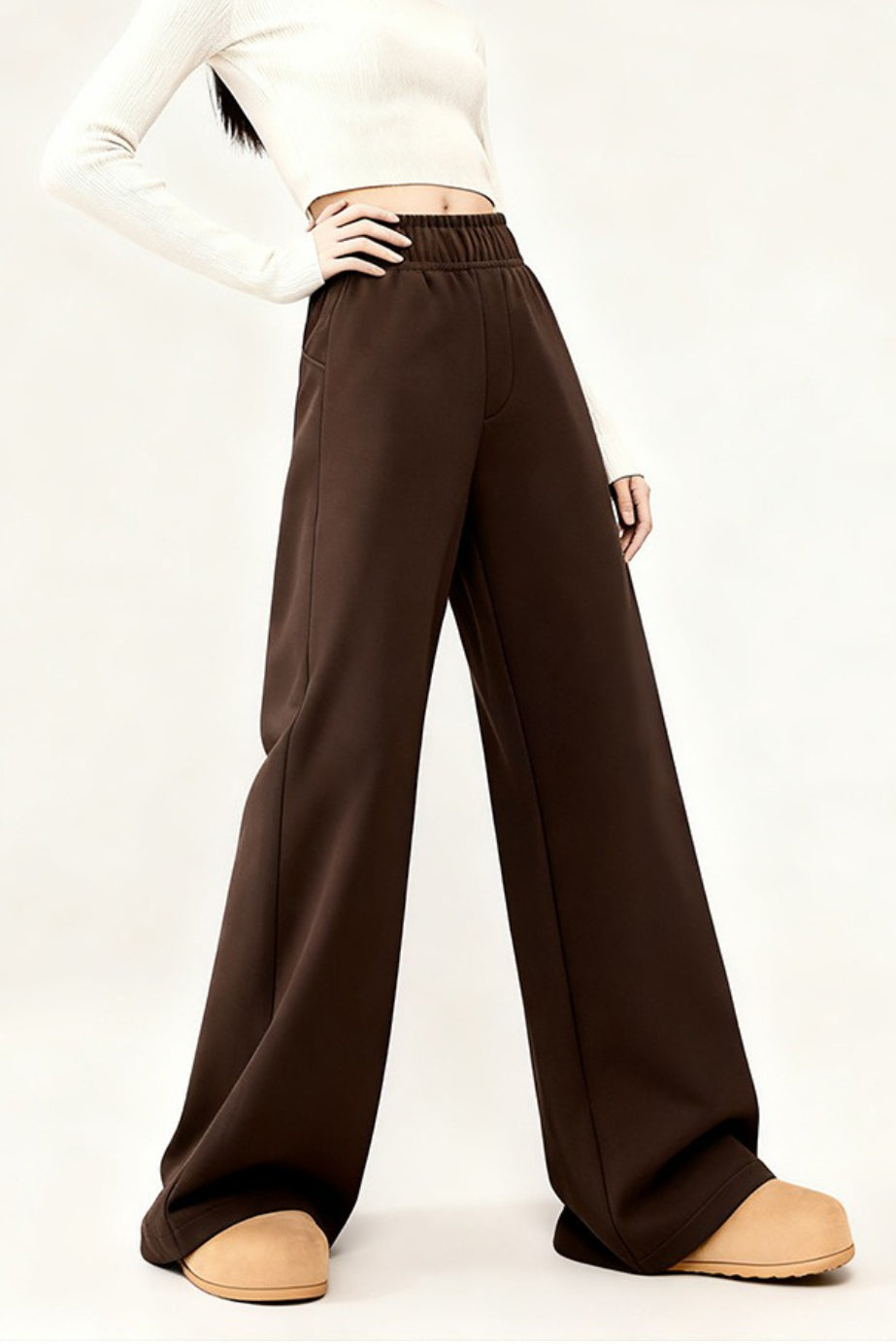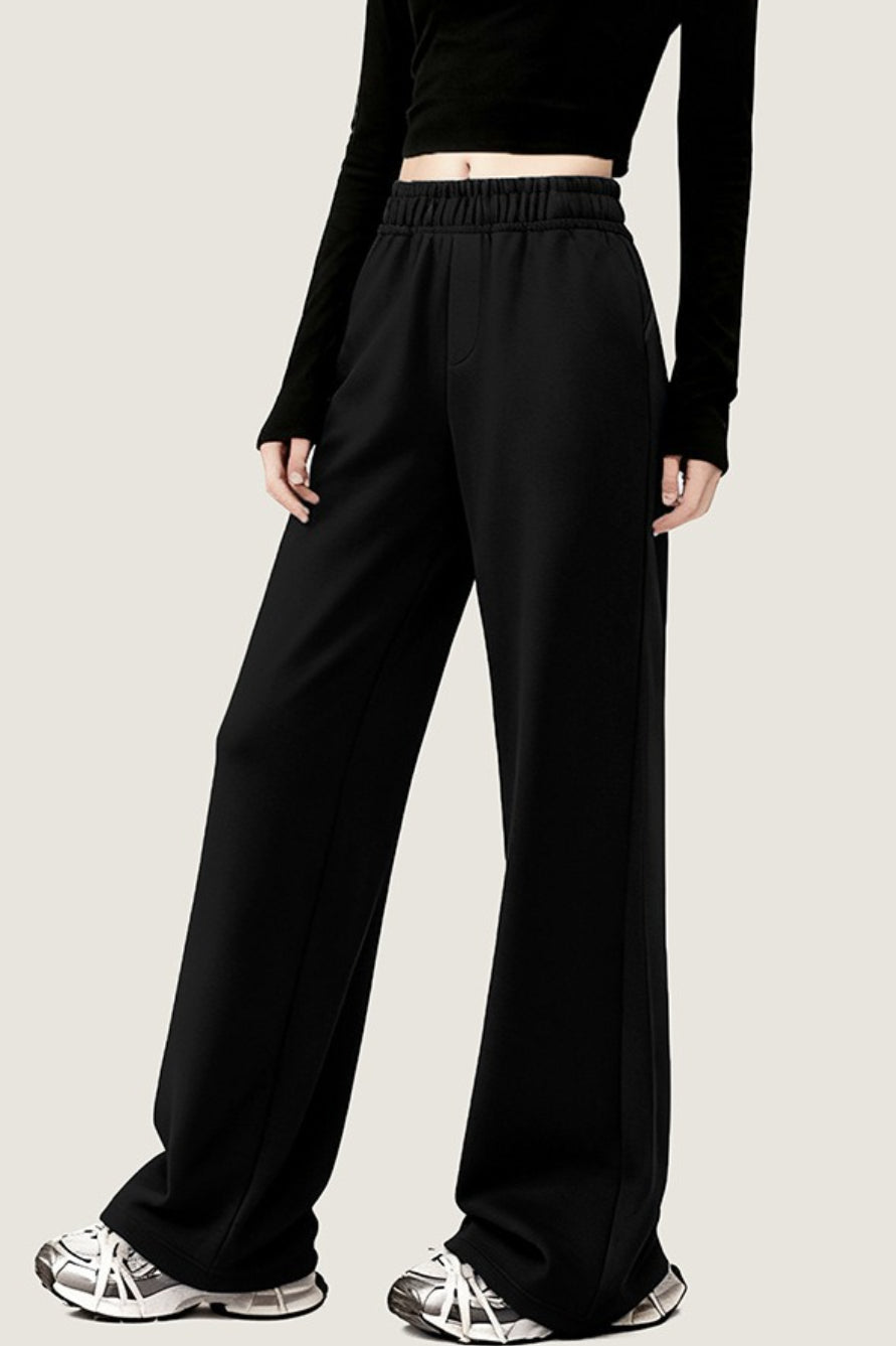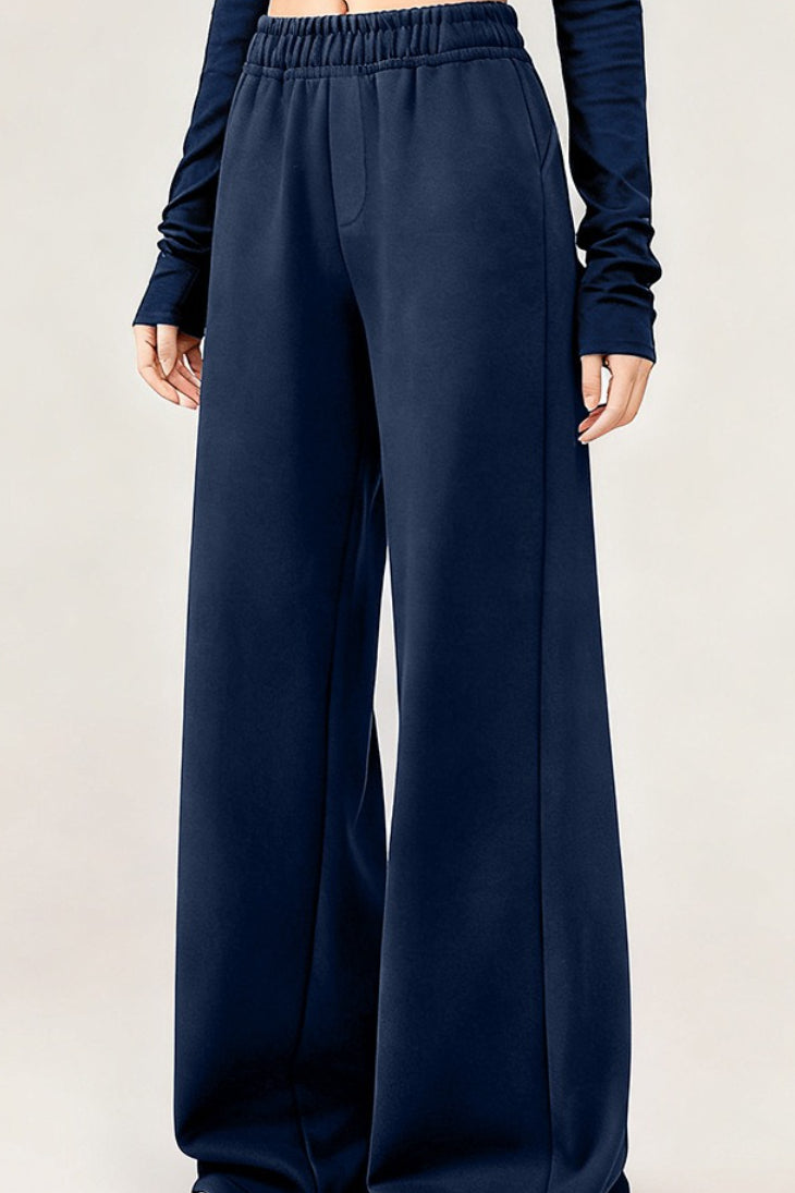 • Waist Type: High Waist • Clothing Type: Wide Leg Pants • Composition: Polyester, Spandex • Details: Solid Color