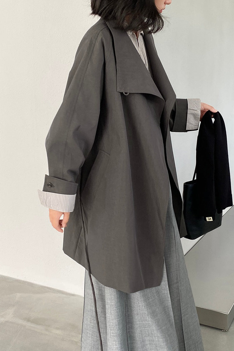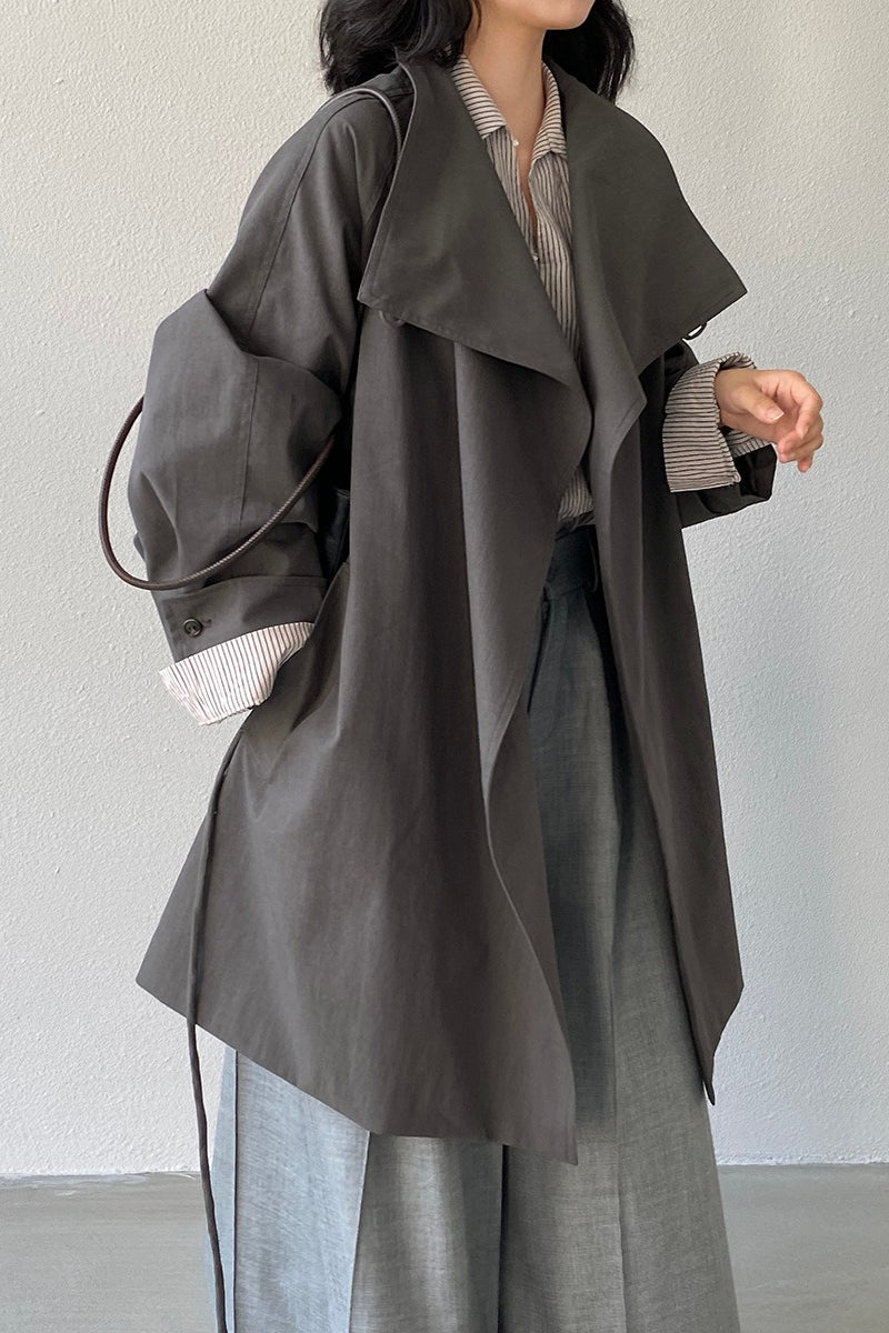 • Fit: Tailored Fit • Neckline: Lapel Collar • Sleeve Length: Long Sleeve • Sleeve Type: Regular sleeve • Details: Tie Belt • Composition: Cotton, Nylon