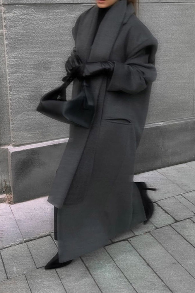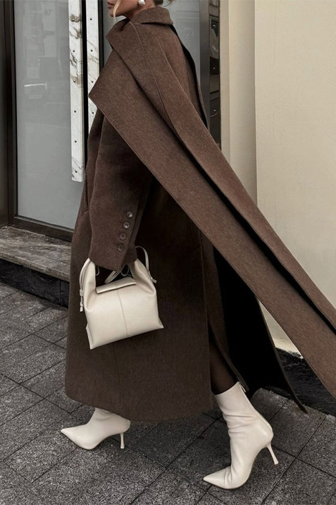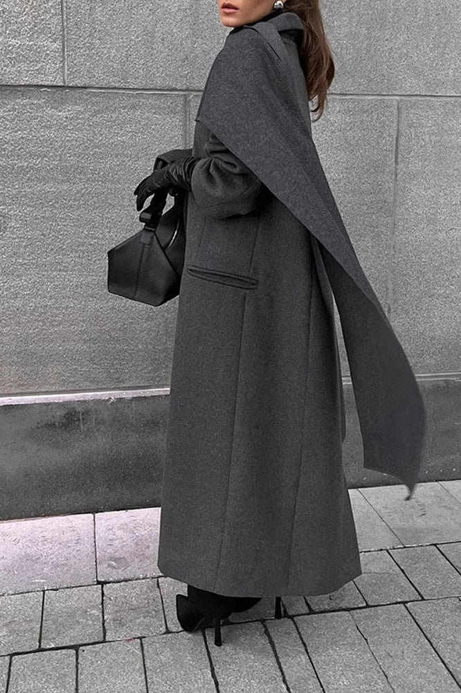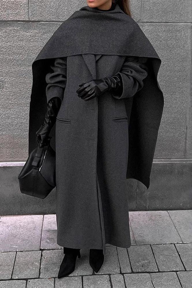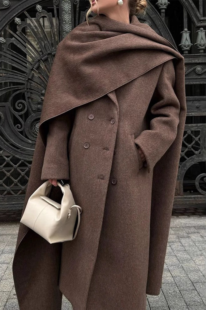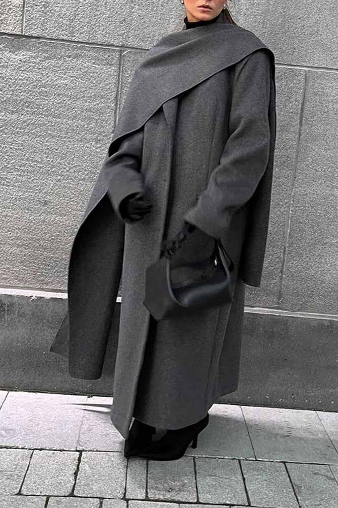 Long Line Scarf Neck Wool Style Overcoat